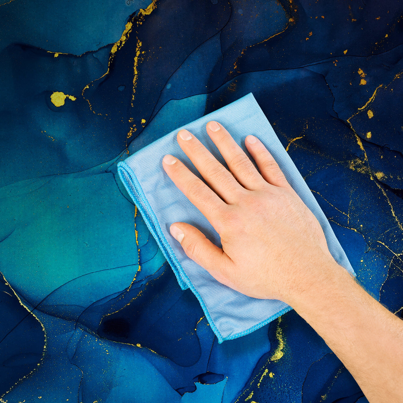 - Reinige eventuelle Kleberreste sofort mit einem feuchten Schwamm oder Tuch.