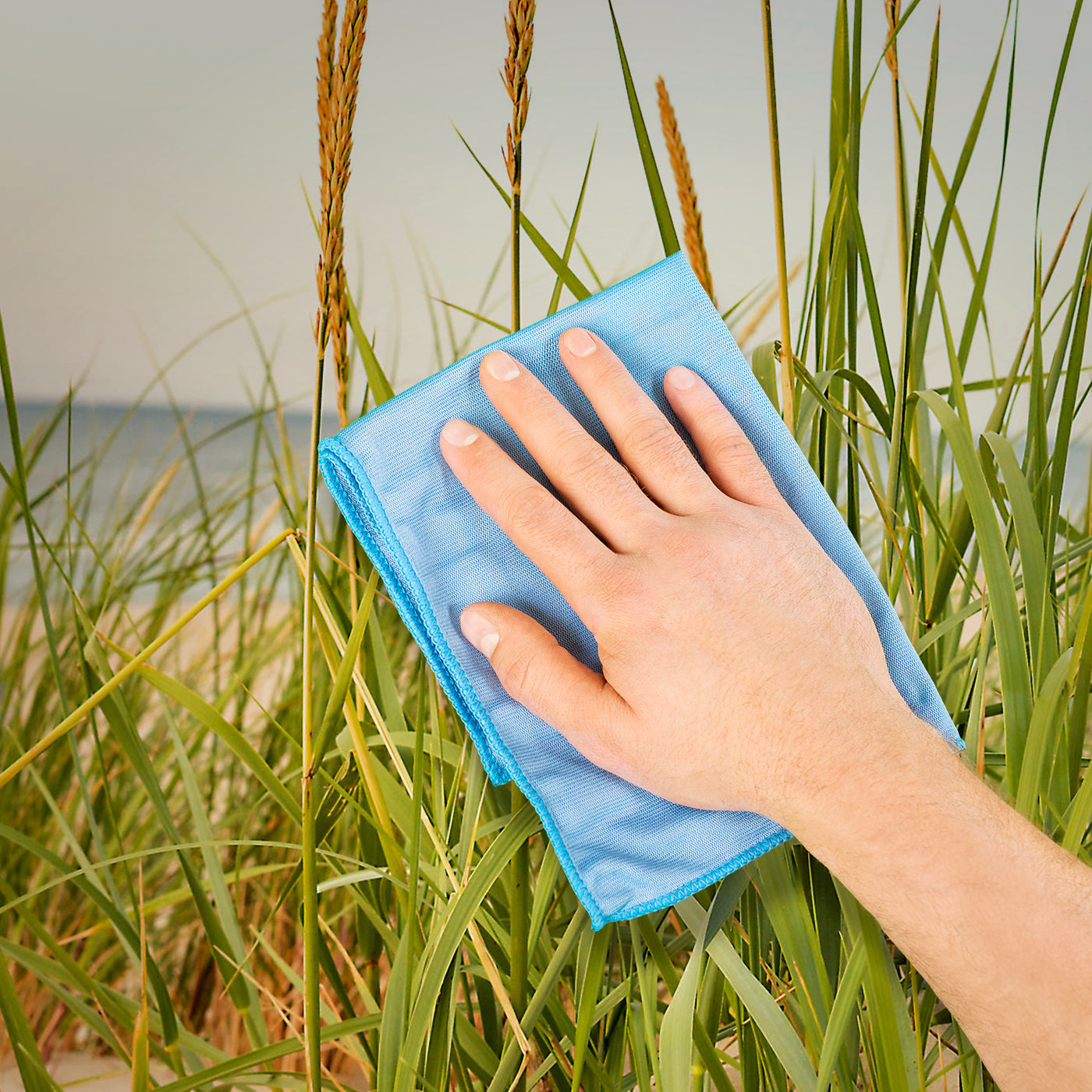 - Reinige eventuelle Verschmutzungen oder Kleberreste sofort mit einem feuchten Schwamm oder Tuch.
