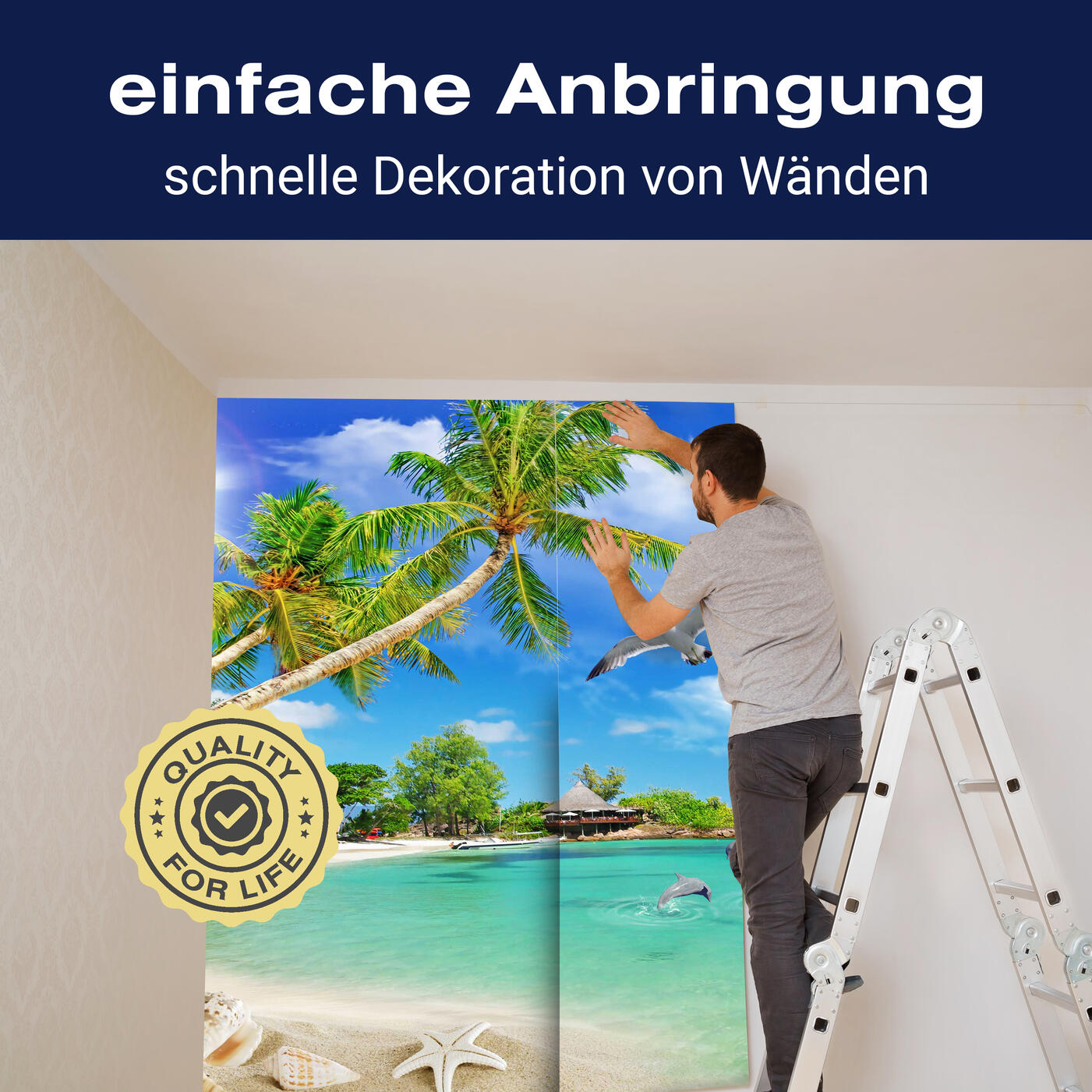 Träumst Du davon, Deine Wände in eine beeindruckende Kunstgalerie zu verwandeln? Mit unserer hochwertigen Fototapete Strand Meer Palmen M6239 ist es jetzt möglich! Jede Wand wird zu einer Leinwand Deiner Kreativität.
