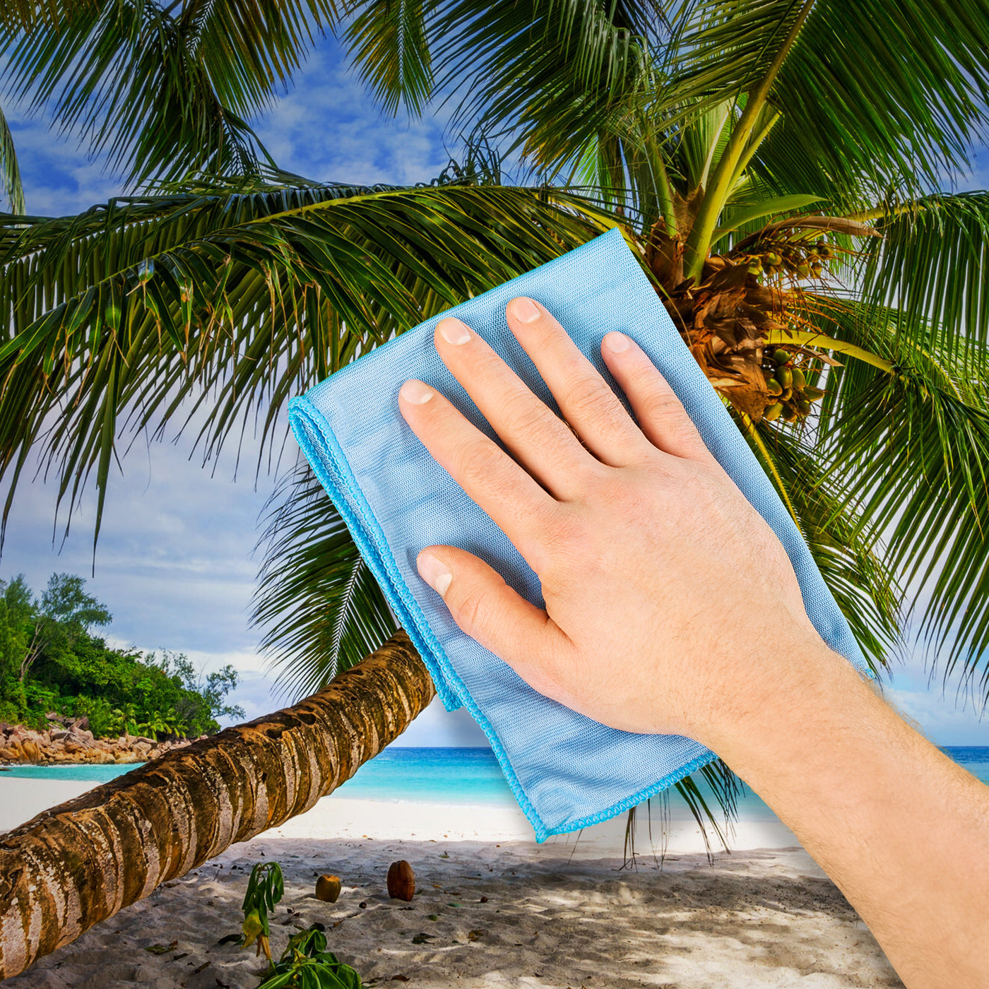 - Reinige eventuelle Verschmutzungen oder Kleberreste sofort mit einem feuchten Schwamm oder Tuch.