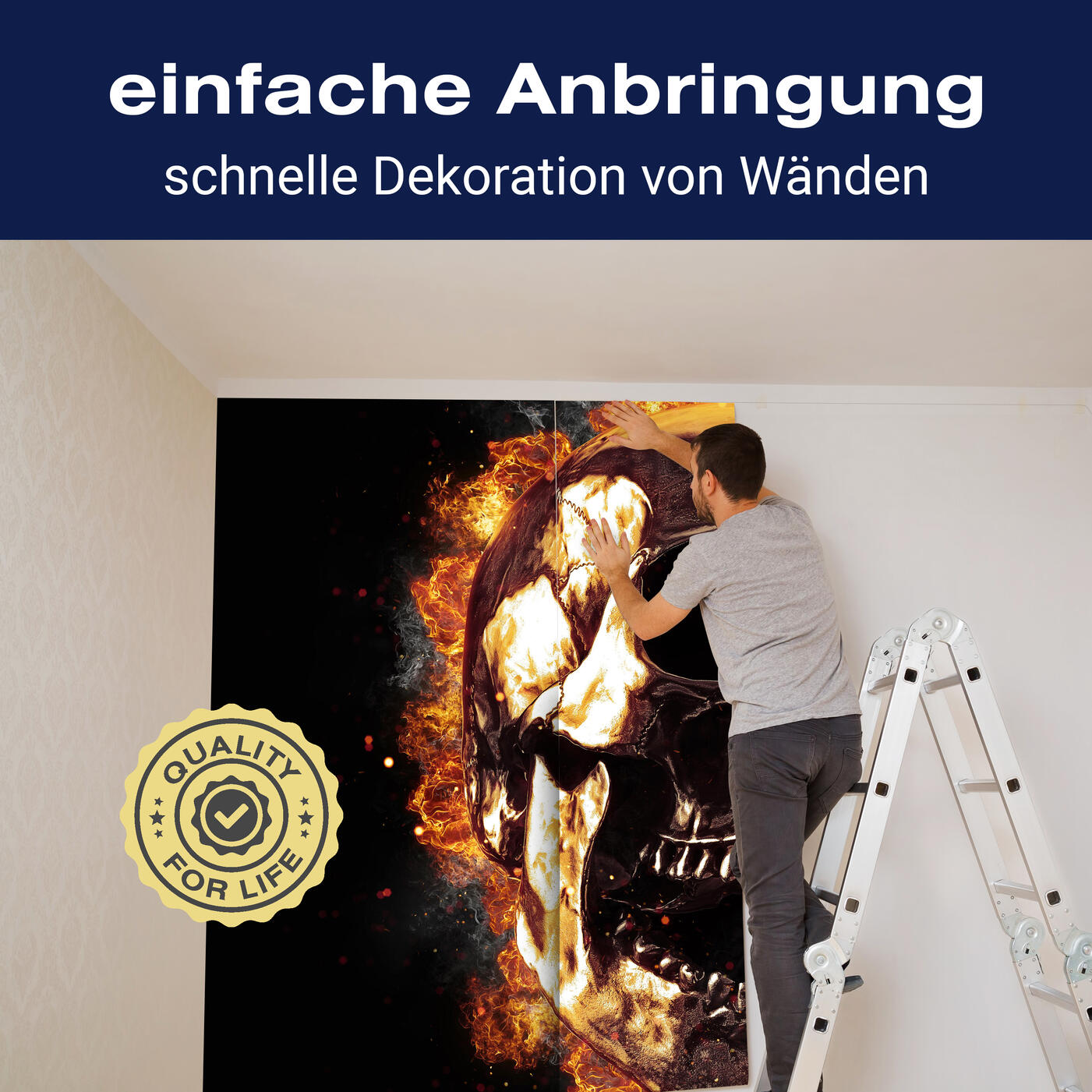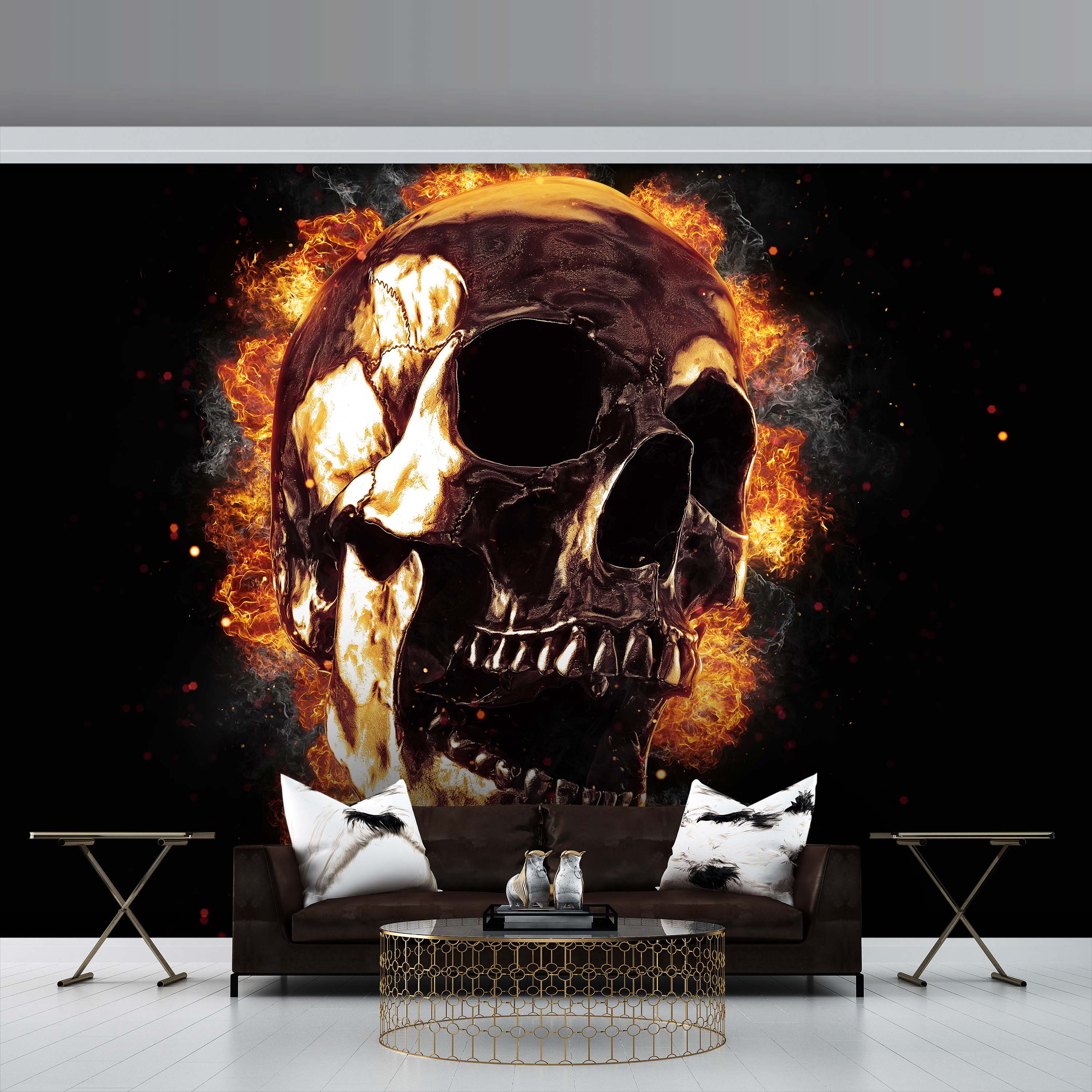Träumst Du davon, Deine Wände in eine beeindruckende Kunstgalerie zu verwandeln? Mit unserer hochwertigen Fototapete Totenkopf Metall gold Feuer M6805 ist es jetzt möglich! Jede Wand wird zu einer Leinwand Deiner Kreativität.