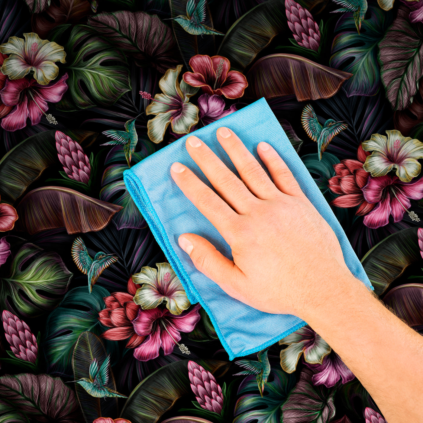 Die Fototapeten sind pflegeleicht und können mit einem feuchten Tuch gereinigt werden, ohne die Farbbrillanz zu beeinträchtigen.