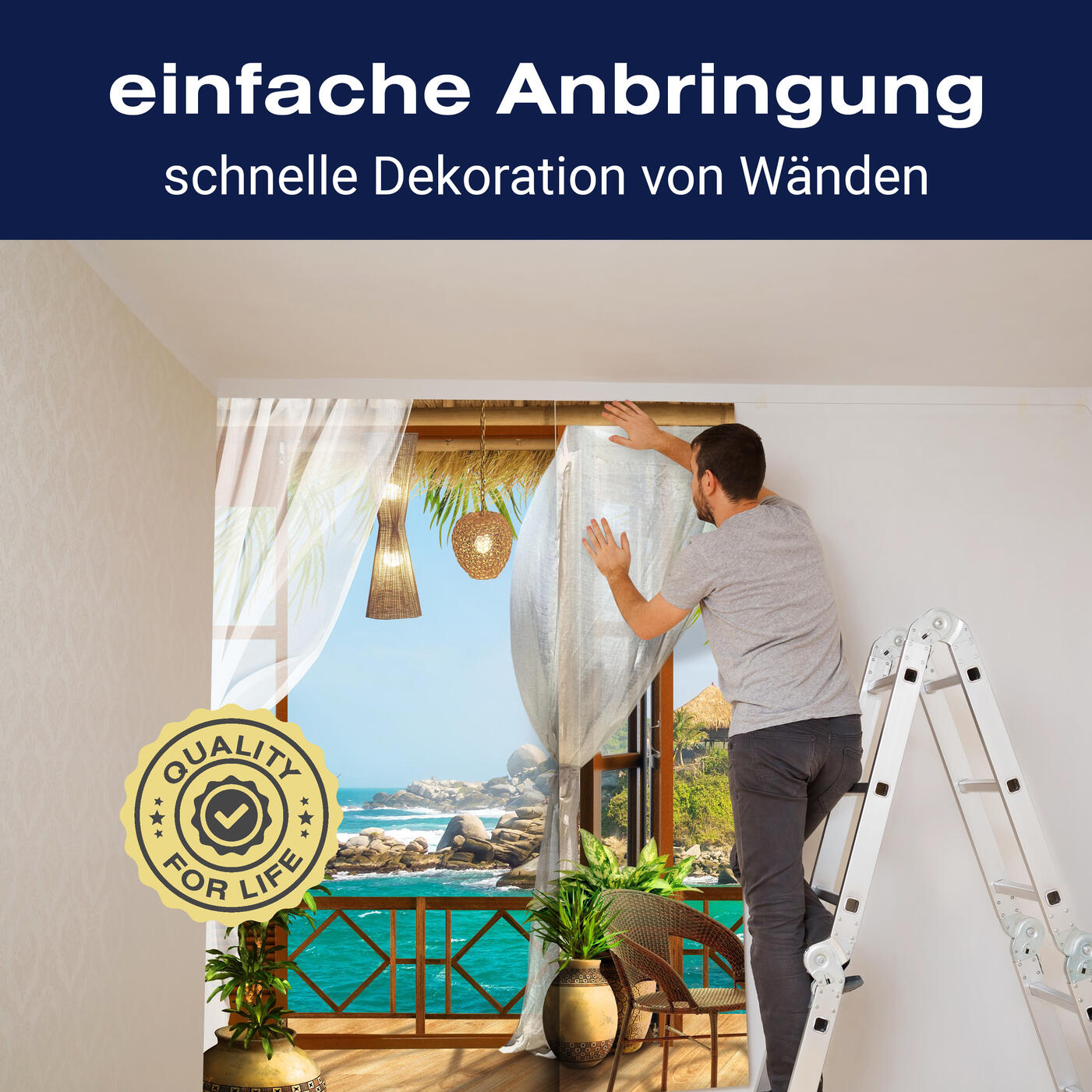 Träumst Du davon, Deine Wände in eine beeindruckende Kunstgalerie zu verwandeln? Mit unserer hochwertigen Fototapete Tropical Meer-blick Balkon M1231 ist es jetzt möglich! Jede Wand wird zu einer Leinwand Deiner Kreativität.