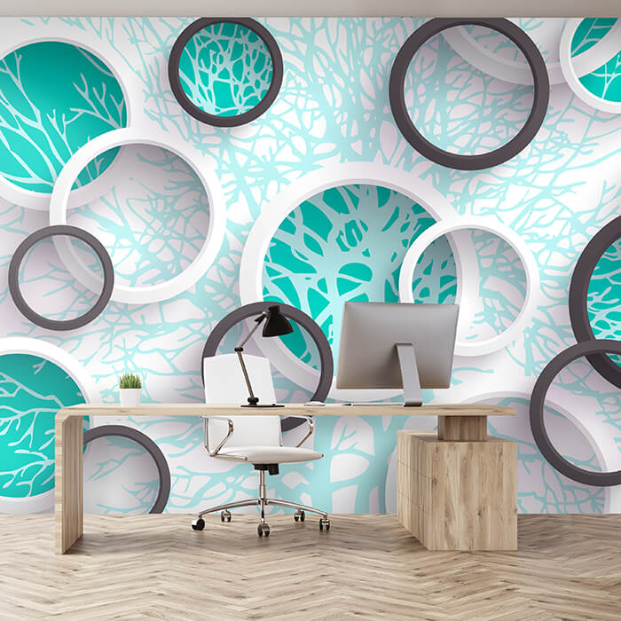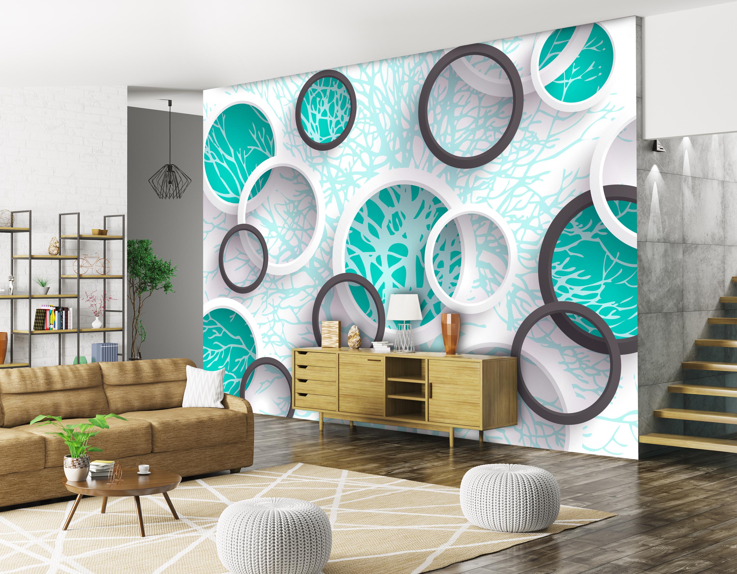FOTOTAPETE Türkis äste 3D Abstrakt Fenster Kreise