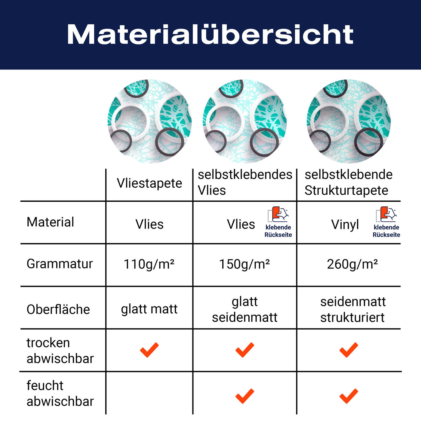 - Selbstklebendes Vlies 150g/m²: Einfach anzubringen, perfekt für Mietwohnungen.