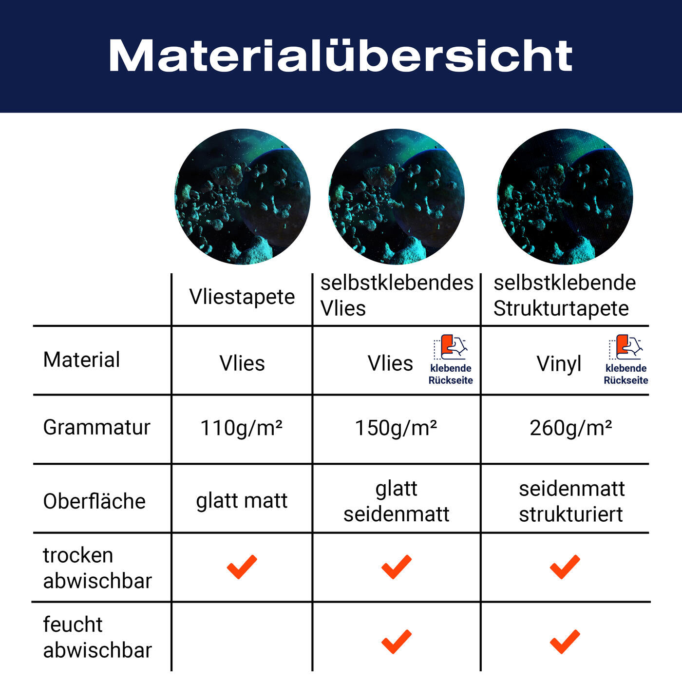 - Selbstklebendes Vlies 150g/m²: Einfach anzubringen, perfekt für Mietwohnungen.