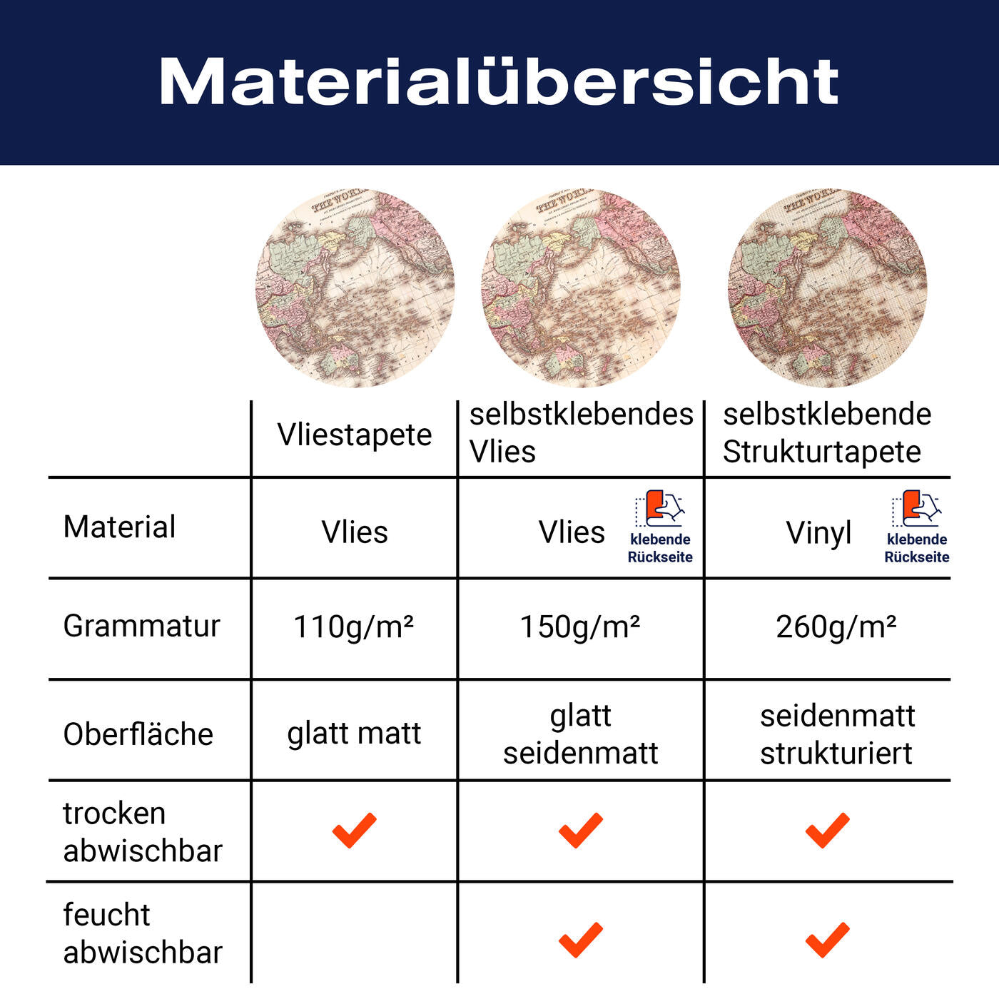 Die Fototapeten sind pflegeleicht und können mit einem feuchten Tuch gereinigt werden, ohne die Farbbrillanz zu beeinträchtigen.