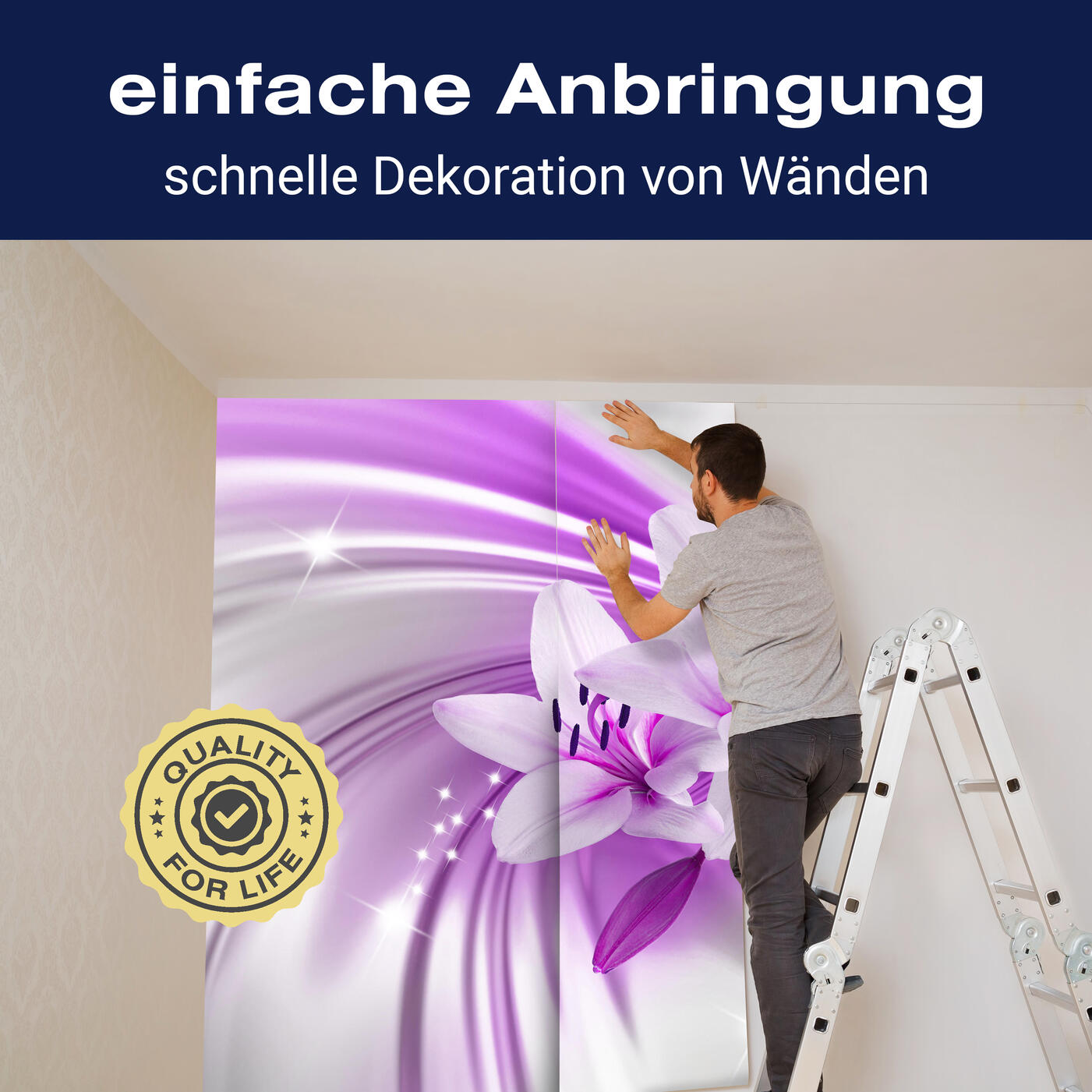 Träumst Du davon, Deine Wände in eine beeindruckende Kunstgalerie zu verwandeln? Mit unserer hochwertigen Fototapete Violett Lilien Blüten M1322 ist es jetzt möglich! Jede Wand wird zu einer Leinwand Deiner Kreativität.