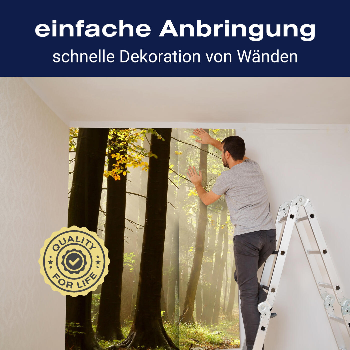 Unsere Fototapeten sind so konzipiert, dass sie ohne großen Aufwand angebracht werden können. Ob selbstklebend oder traditionell, die Anbringung ist einfach und schnell.