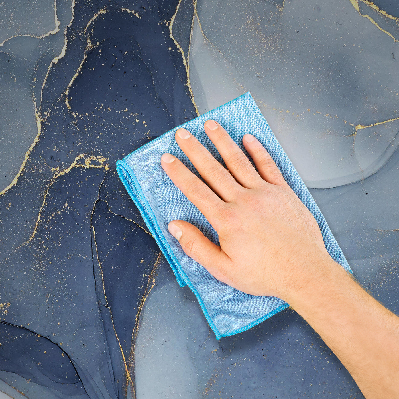 - Reinige eventuelle Kleberreste sofort mit einem feuchten Schwamm oder Tuch.