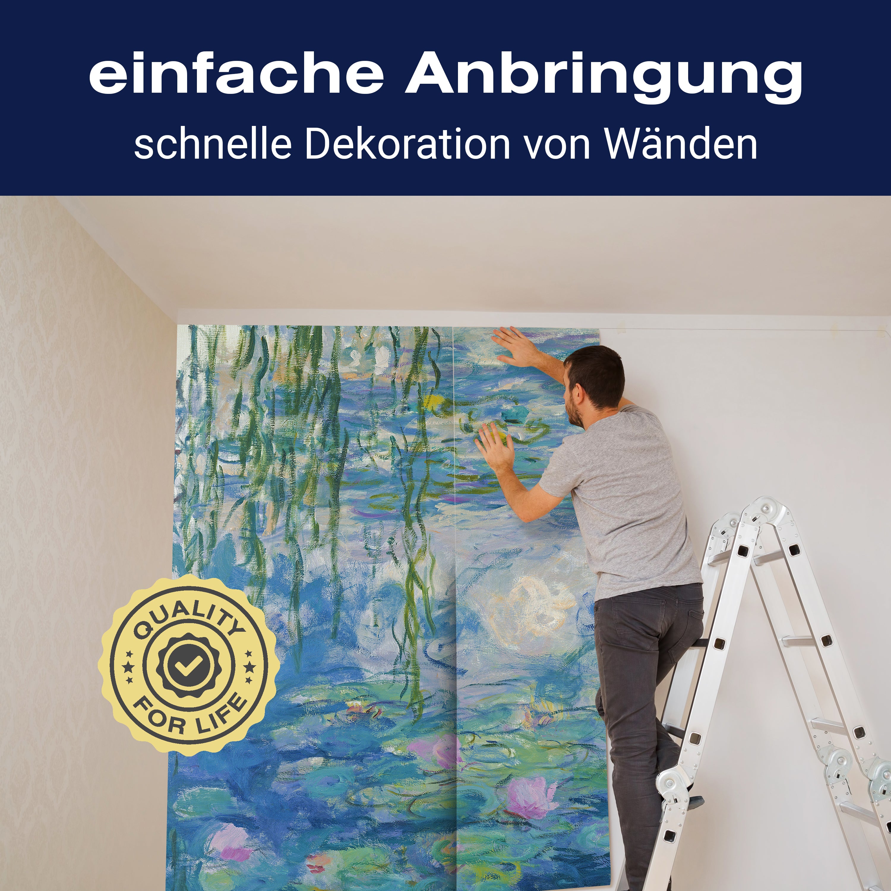 Unsere Fototapeten sind so konzipiert, dass sie ohne großen Aufwand angebracht werden können. Ob selbstklebend oder traditionell, die Anbringung ist einfach und schnell.