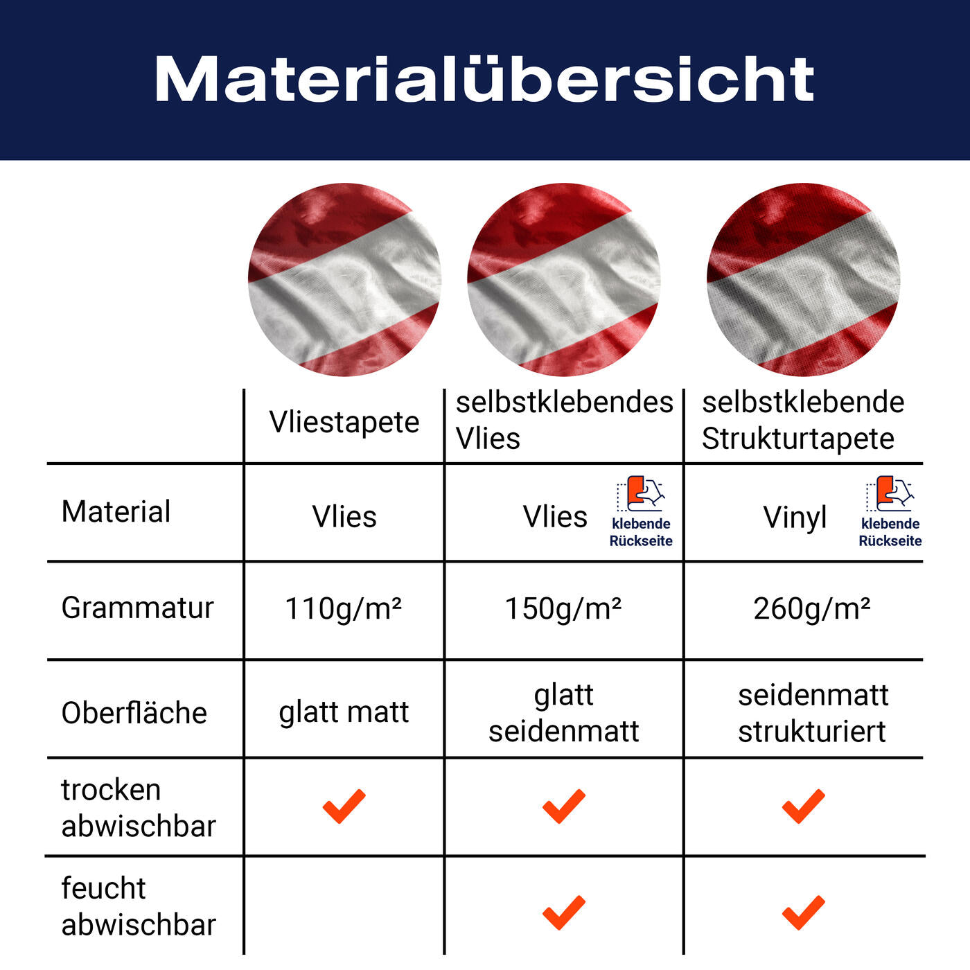 Die Fototapeten sind pflegeleicht und können mit einem feuchten Tuch gereinigt werden, ohne die Farbbrillanz zu beeinträchtigen.