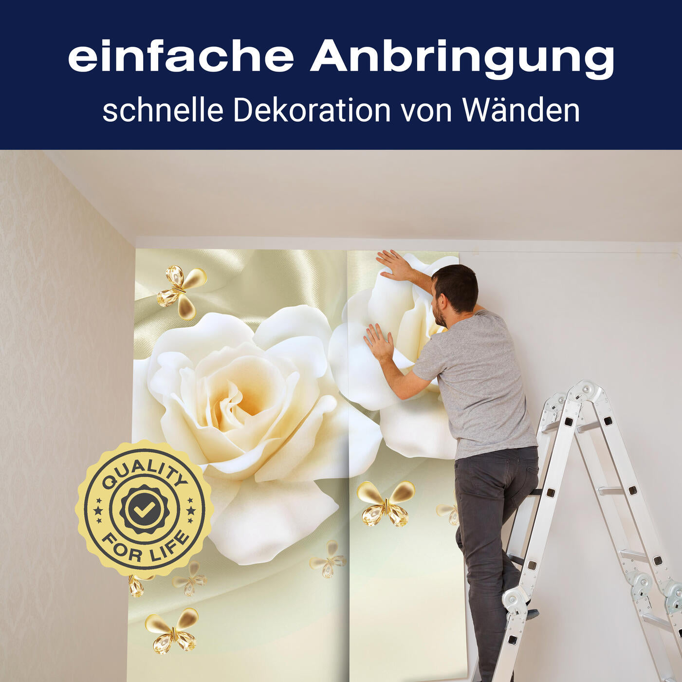 Träumst Du davon, Deine Wände in eine beeindruckende Kunstgalerie zu verwandeln? Mit unserer hochwertigen Fototapete weiße Rosen Schmetterlinge M6278 ist es jetzt möglich! Jede Wand wird zu einer Leinwand Deiner Kreativität.