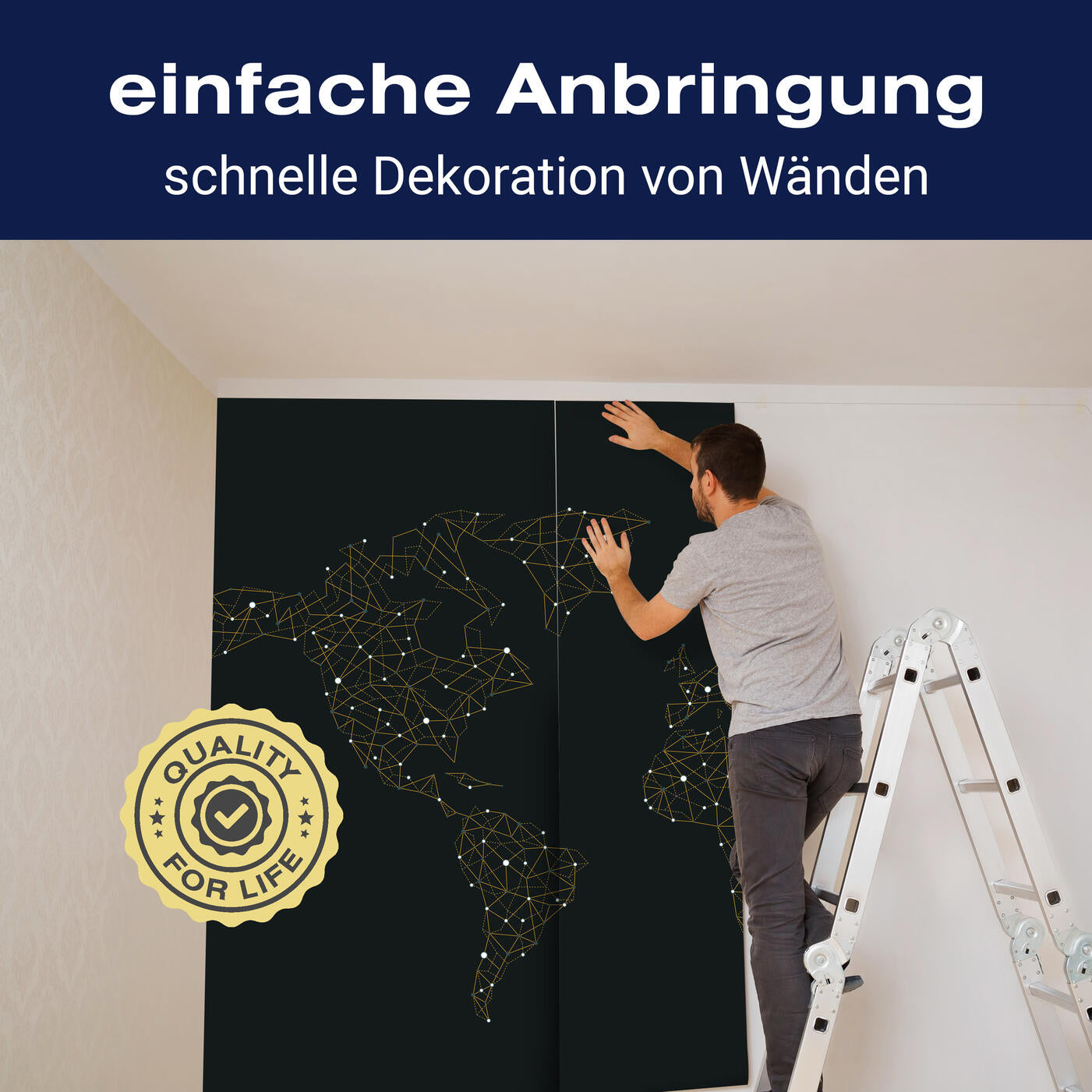 - Wenn deine Fototapete aus mehreren Bahnen besteht, achte darauf, dass die Motive oder das Design sauber und nahtlos ineinander übergehen. Achte dabei auf die Anweisungen des Herstellers oder auf eventuelle Markierungen auf der Tapete selbst.