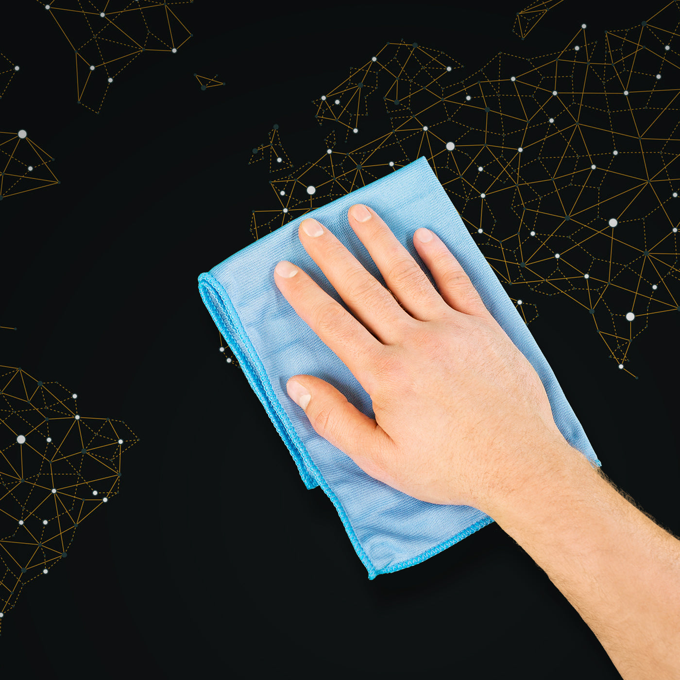 - Reinige eventuelle Verschmutzungen oder Kleberreste sofort mit einem feuchten Schwamm oder Tuch.