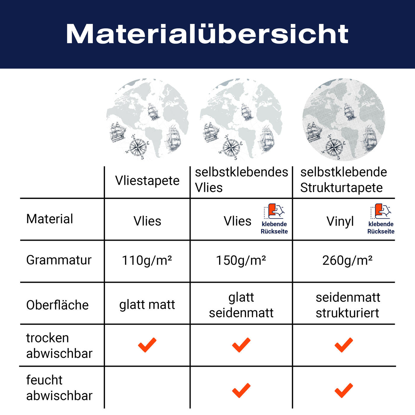 - Selbstklebendes Vlies 150g/m²: Einfach anzubringen, perfekt für Mietwohnungen.
