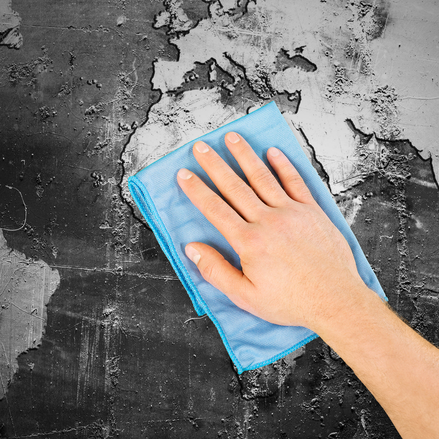 - Reinige eventuelle Verschmutzungen oder Kleberreste sofort mit einem feuchten Schwamm oder Tuch.