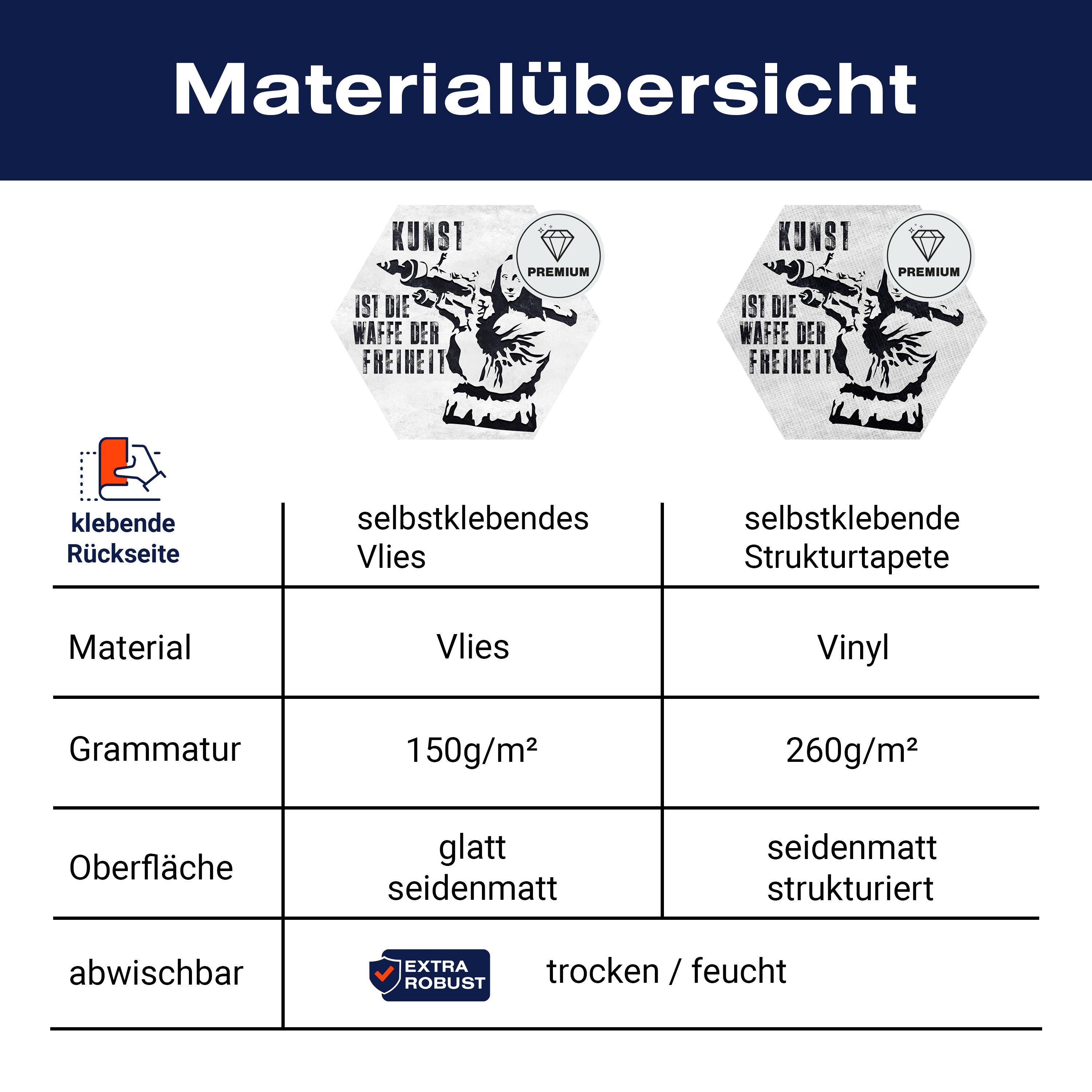 - Selbstklebendes Vlies 150g/m²: Einfach anzubringen, perfekt für Mietwohnungen.
