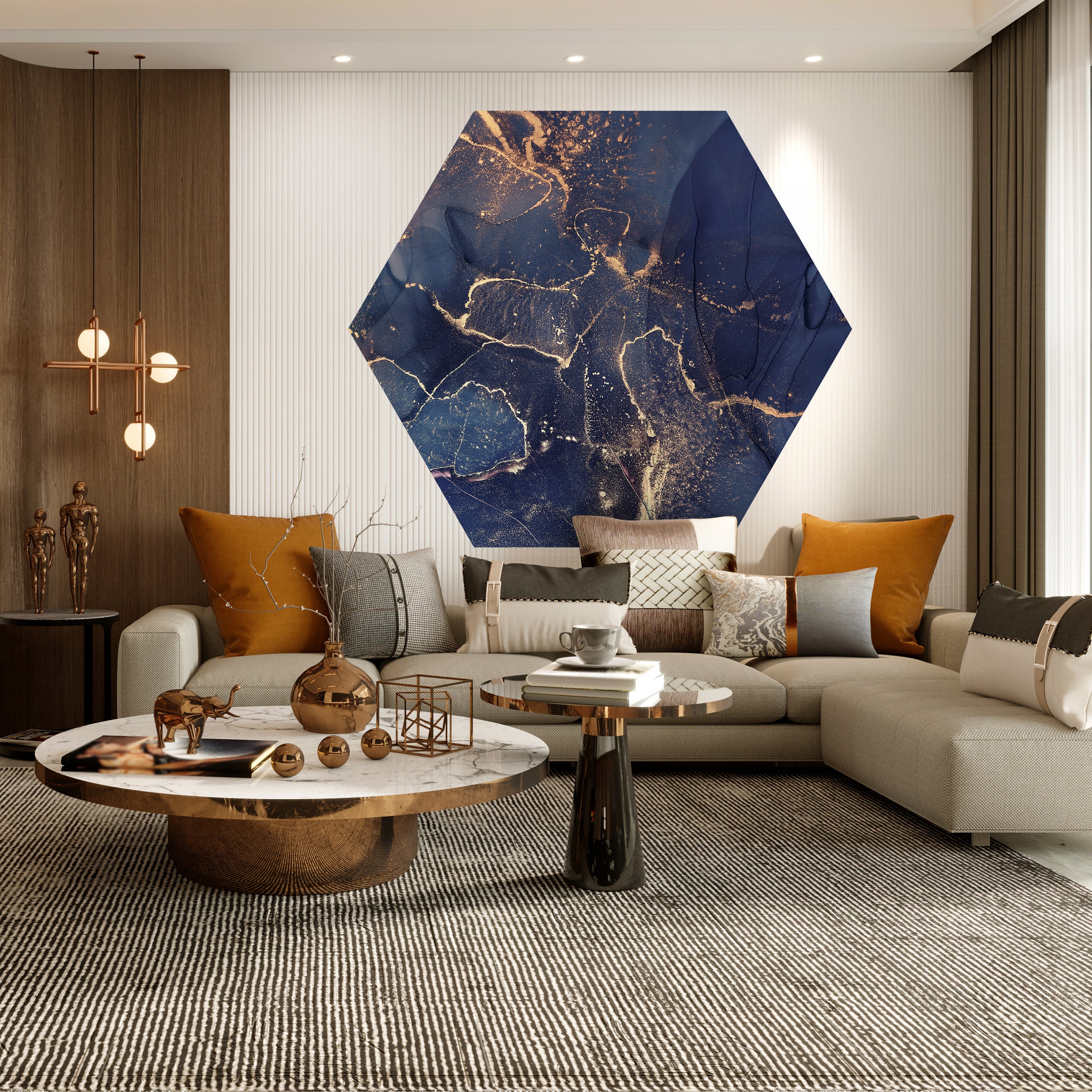 Hexagon-Fototapete blaue Marmoroptik M0035