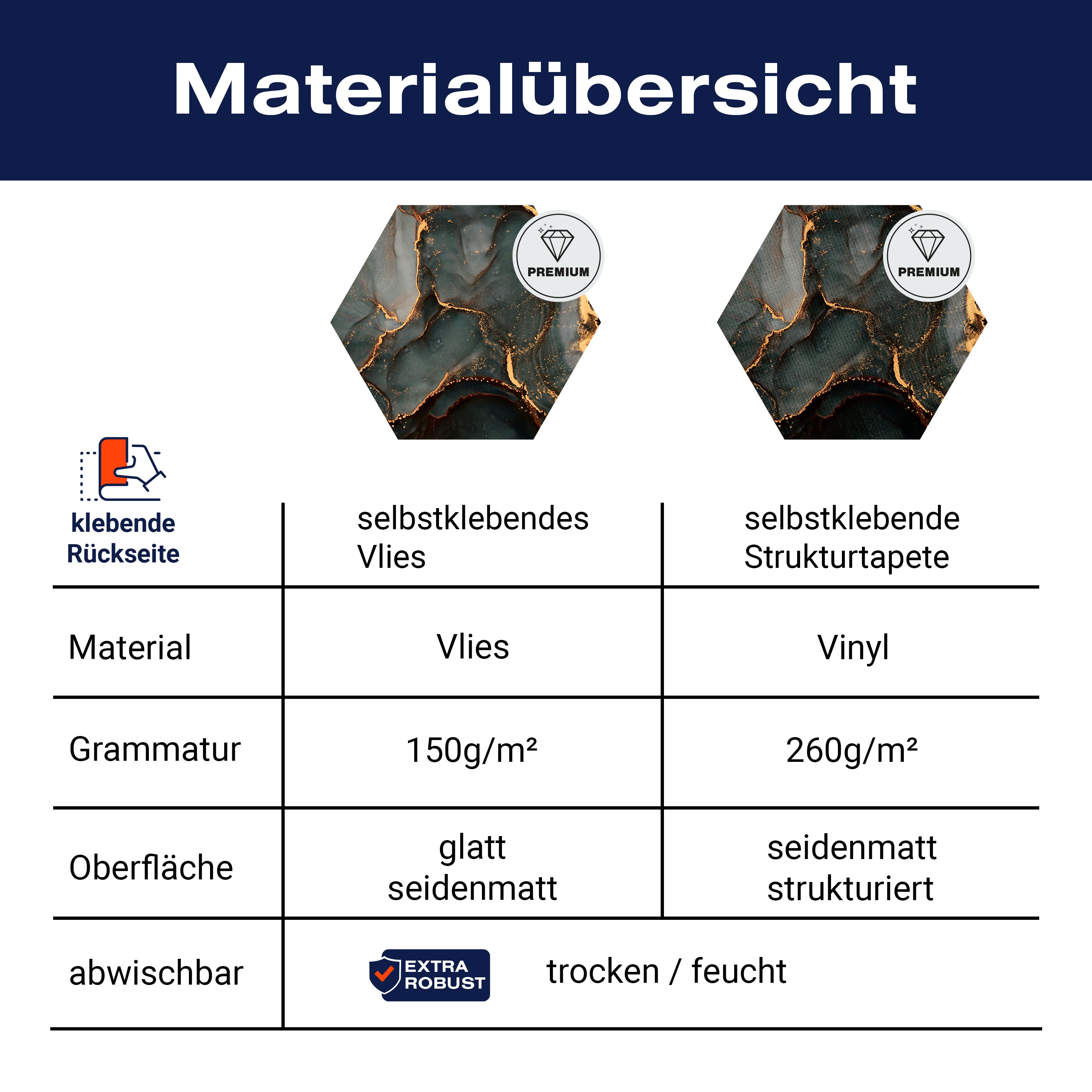 - Selbstklebendes Vlies 150g/m²: Einfach anzubringen, perfekt für Mietwohnungen.