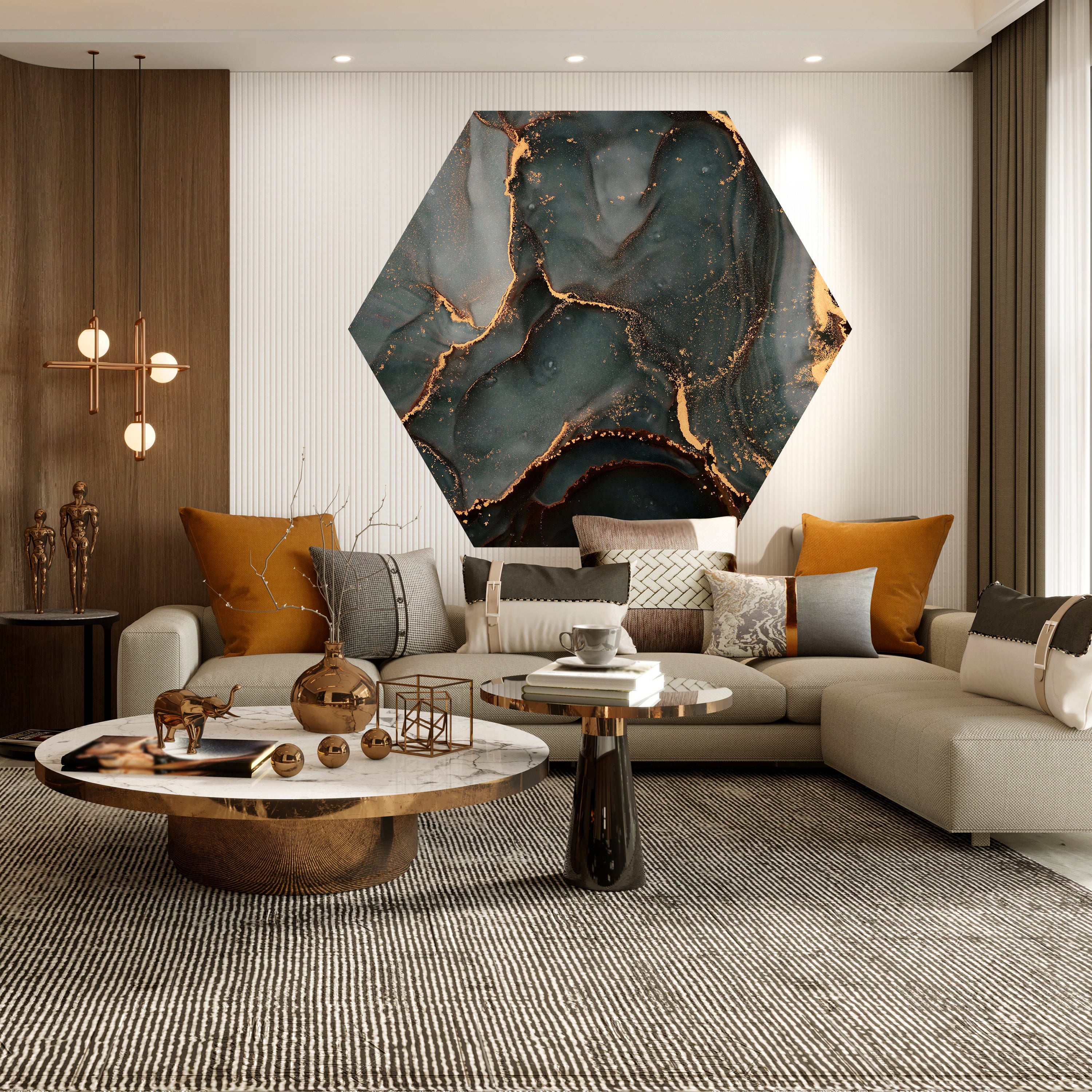 Hexagon-Fototapete blaugraue Marmoroptik M0041