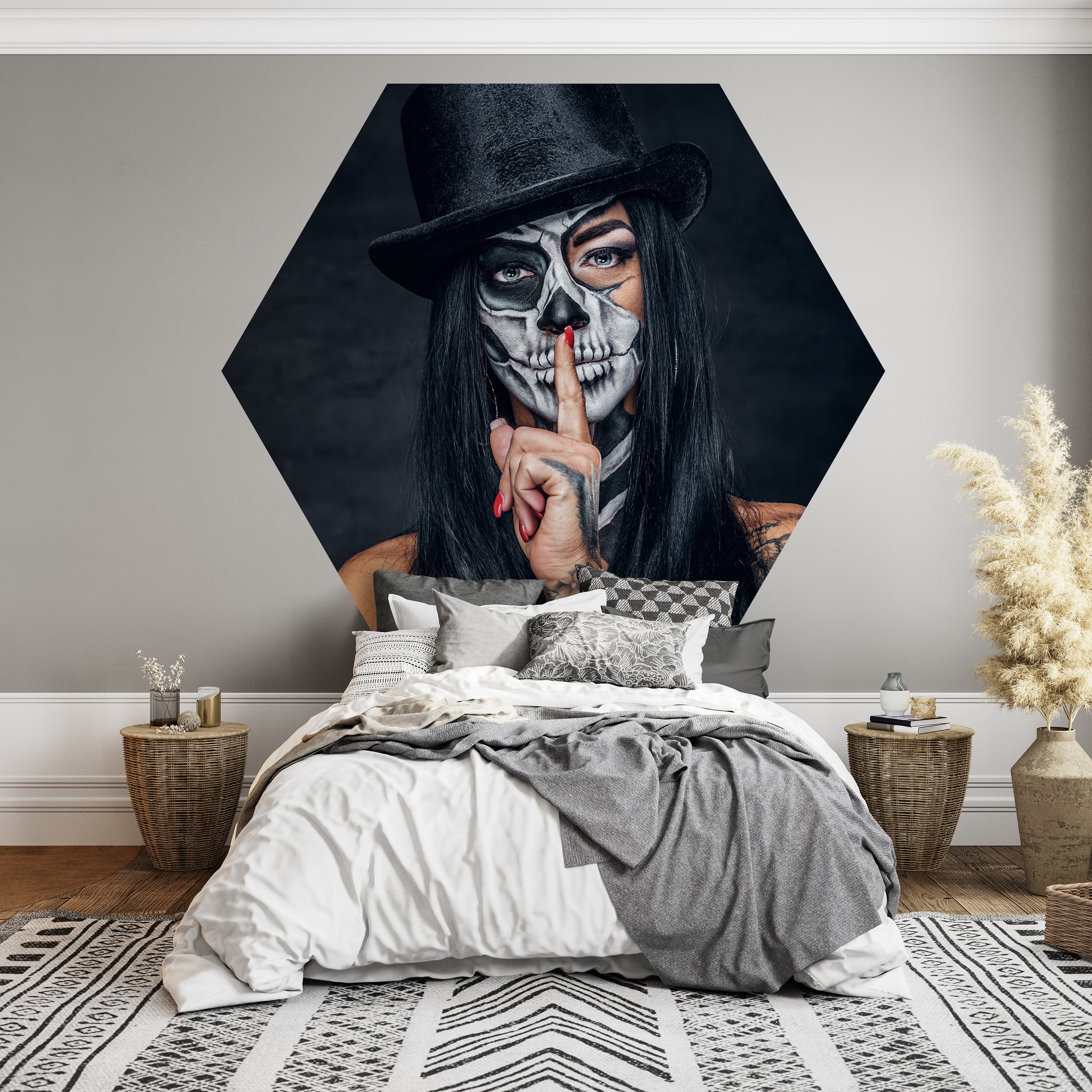 HEXAGON-FOTOTAPETE Frau mit Totenkopf