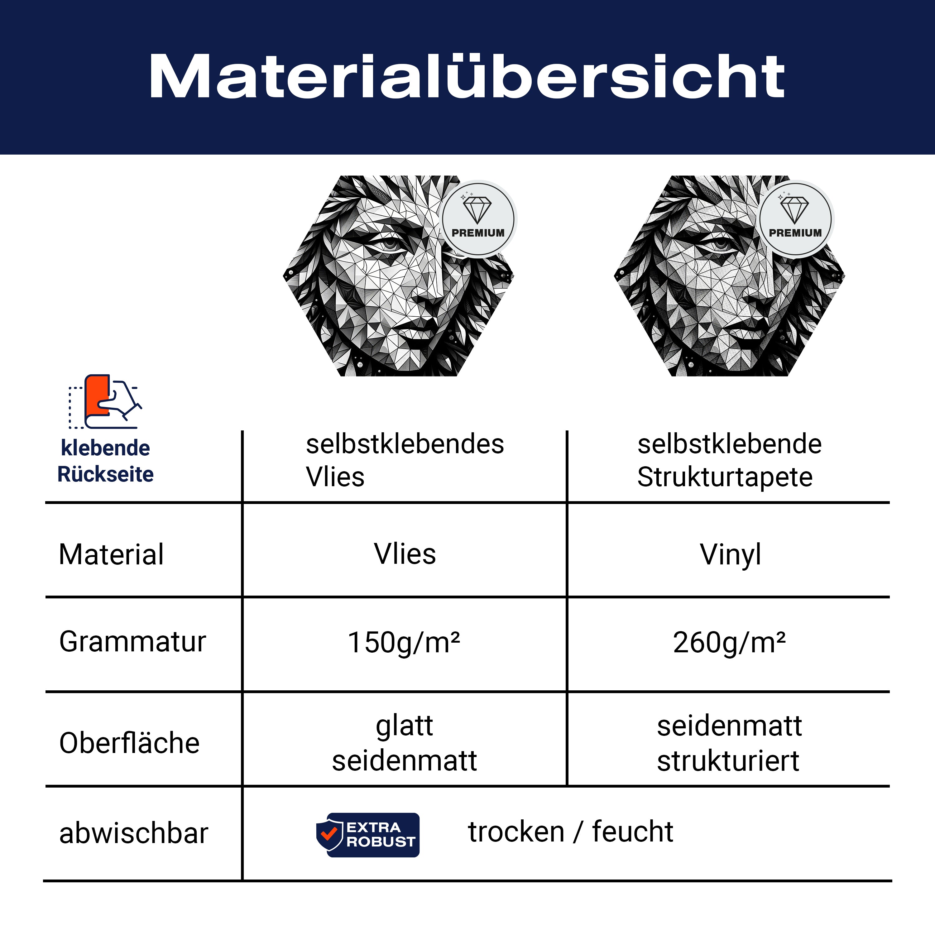 - Selbstklebendes Vlies 150g/m²: Einfach anzubringen, perfekt für Mietwohnungen.
