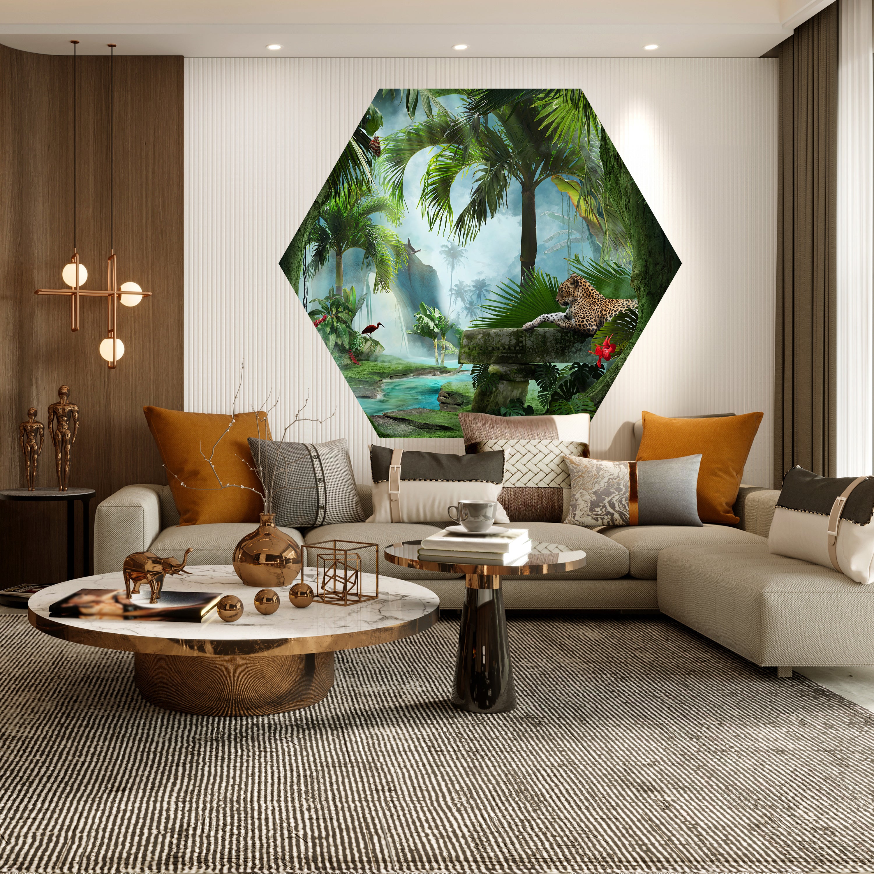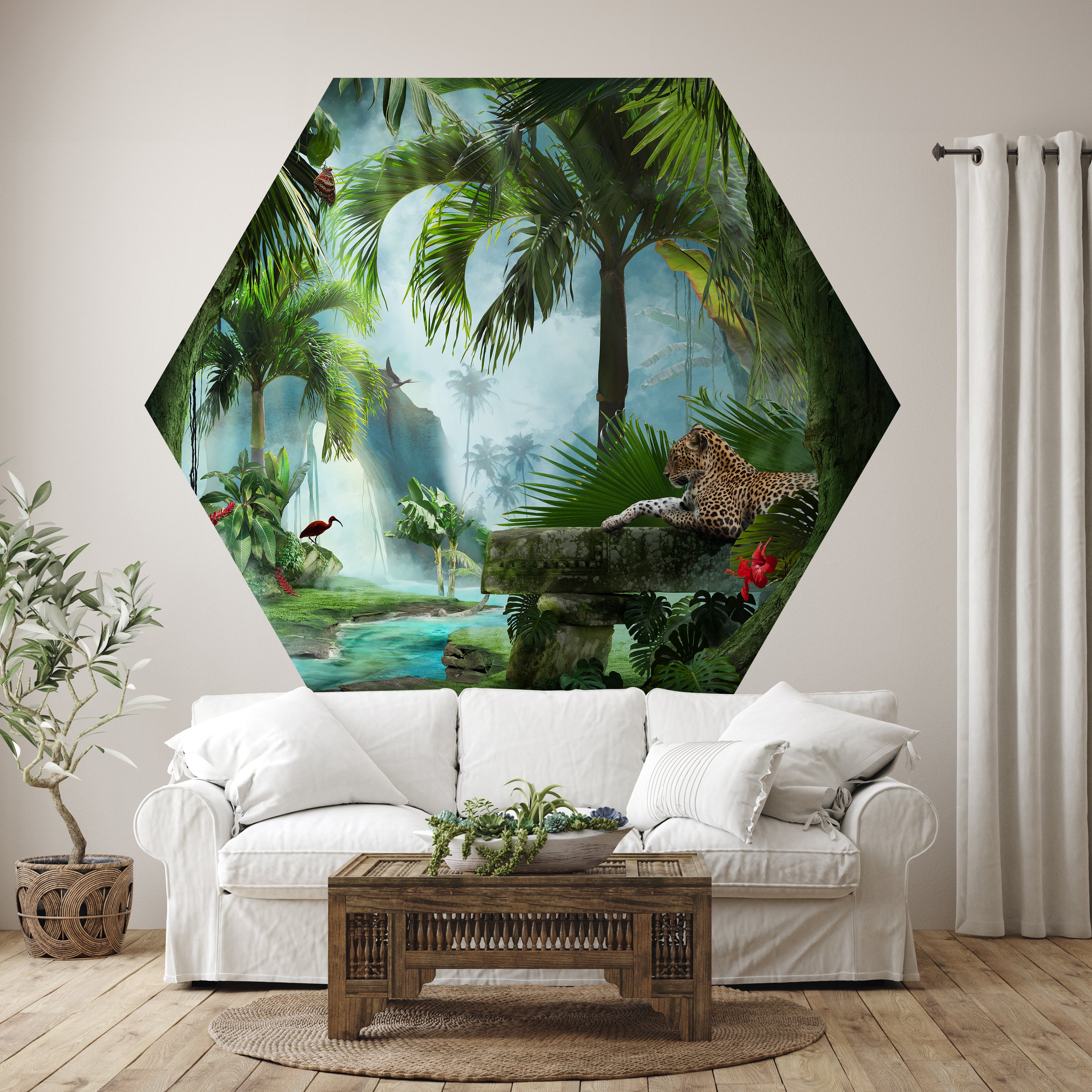 HEXAGON-FOTOTAPETE Jaguar im Dschungel