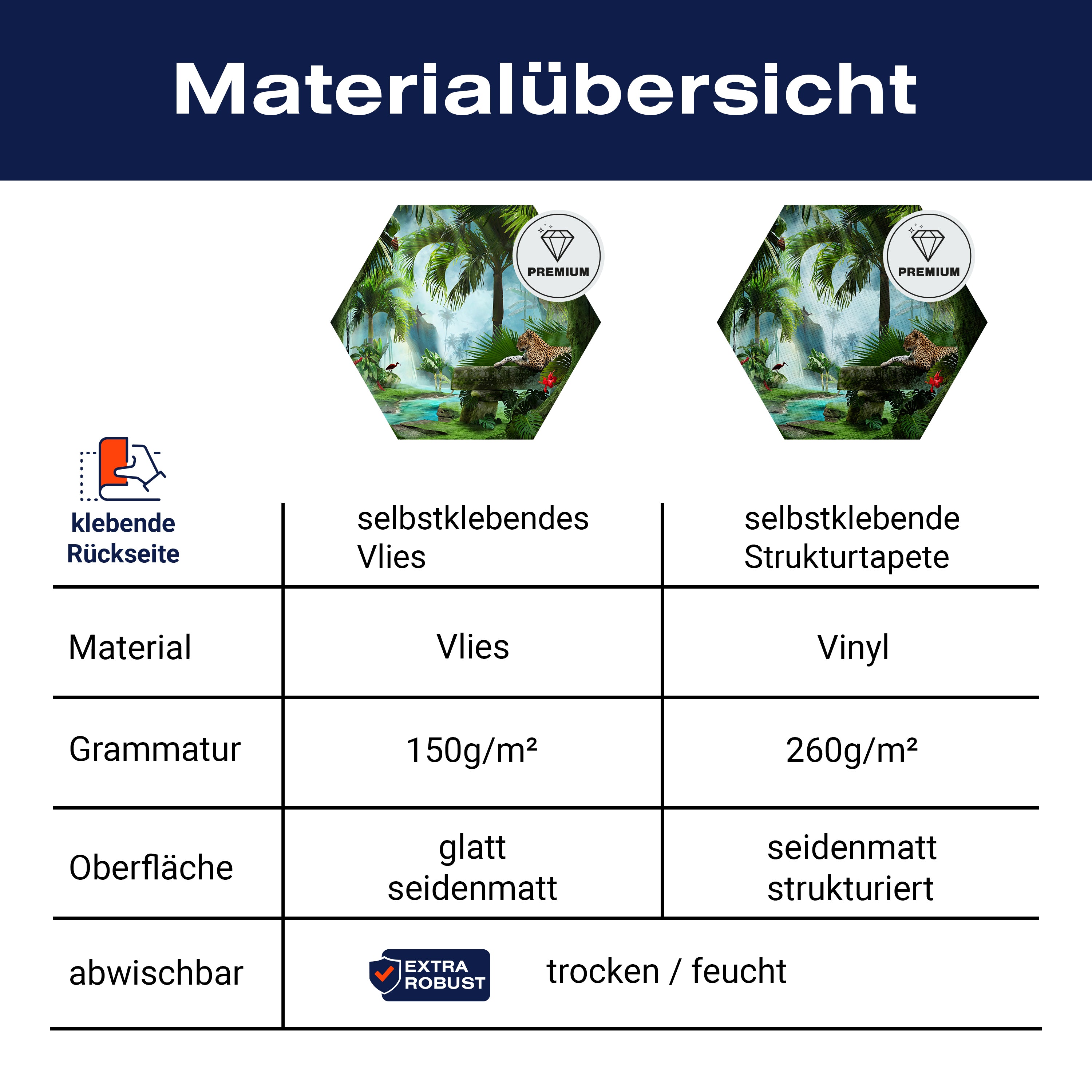 Setze auf die UV-Guard-Technologie, um deine selbstklebenden Panorama-Fototapeten nicht nur atemberaubend, sondern auch dauerhaft strahlend zu gestalten. Dieser fortschrittliche UV-Schutz sorgt dafür, dass die lebhaften Farben und scharfen Details deiner Wandgestaltung gegen die bleichende Wirkung der Sonnenstrahlen geschützt sind. Egal, wie intensiv das Sonnenlicht ist, die UV-Guard-Technologie bewahrt die Brillanz und Tiefe deiner Bilder, sodass sie jahrelang wie neu aussehen. Mach dir keine Sorgen mehr über verblassende Farben oder den Verlust von Detailreichtum. Mit dieser Technologie investierst du in die Langlebigkeit und Schönheit deiner Räume. Steige jetzt um auf UV-Guard und genieße ungetrübte Farbenpracht bei jedem Licht.