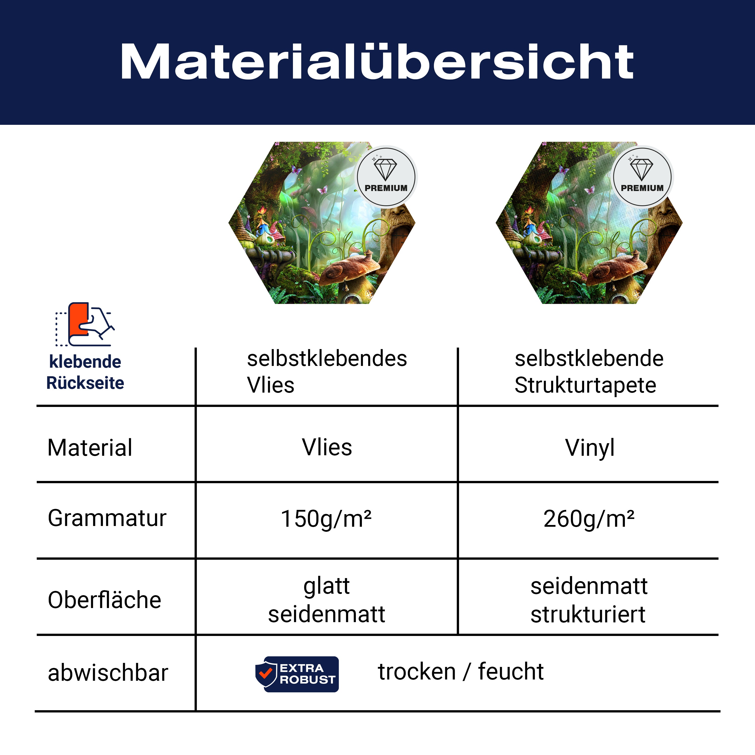 - Selbstklebendes Vlies 150g/m²: Einfach anzubringen, perfekt für Mietwohnungen.