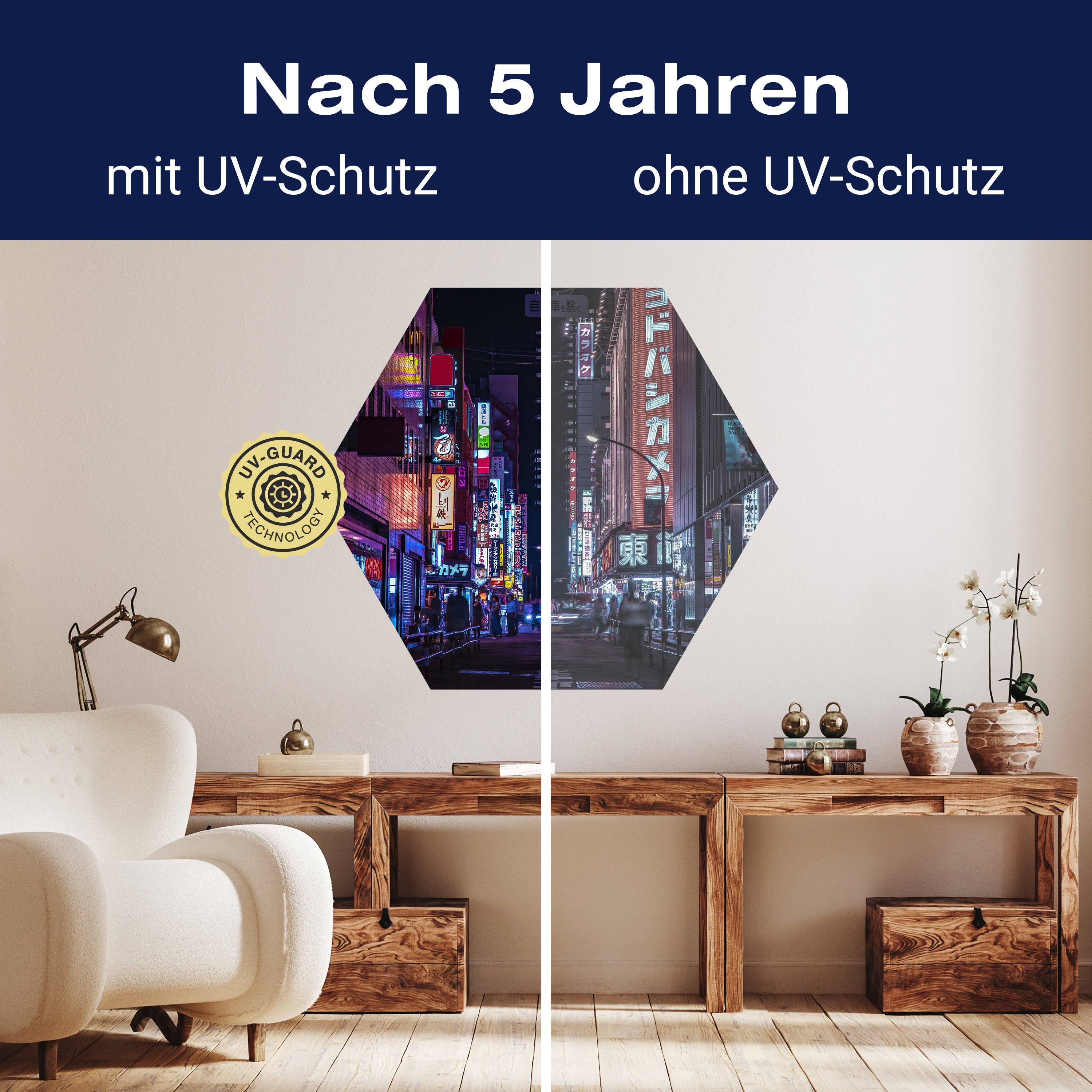 Setze auf die UV-Guard-Technologie, um deine selbstklebenden Panorama-Fototapeten nicht nur atemberaubend, sondern auch dauerhaft strahlend zu gestalten. Dieser fortschrittliche UV-Schutz sorgt dafür, dass die lebhaften Farben und scharfen Details deiner Wandgestaltung gegen die bleichende Wirkung der Sonnenstrahlen geschützt sind. Egal, wie intensiv das Sonnenlicht ist, die UV-Guard-Technologie bewahrt die Brillanz und Tiefe deiner Bilder, sodass sie jahrelang wie neu aussehen. Mach dir keine Sorgen mehr über verblassende Farben oder den Verlust von Detailreichtum. Mit dieser Technologie investierst du in die Langlebigkeit und Schönheit deiner Räume. Steige jetzt um auf UV-Guard und genieße ungetrübte Farbenpracht bei jedem Licht.