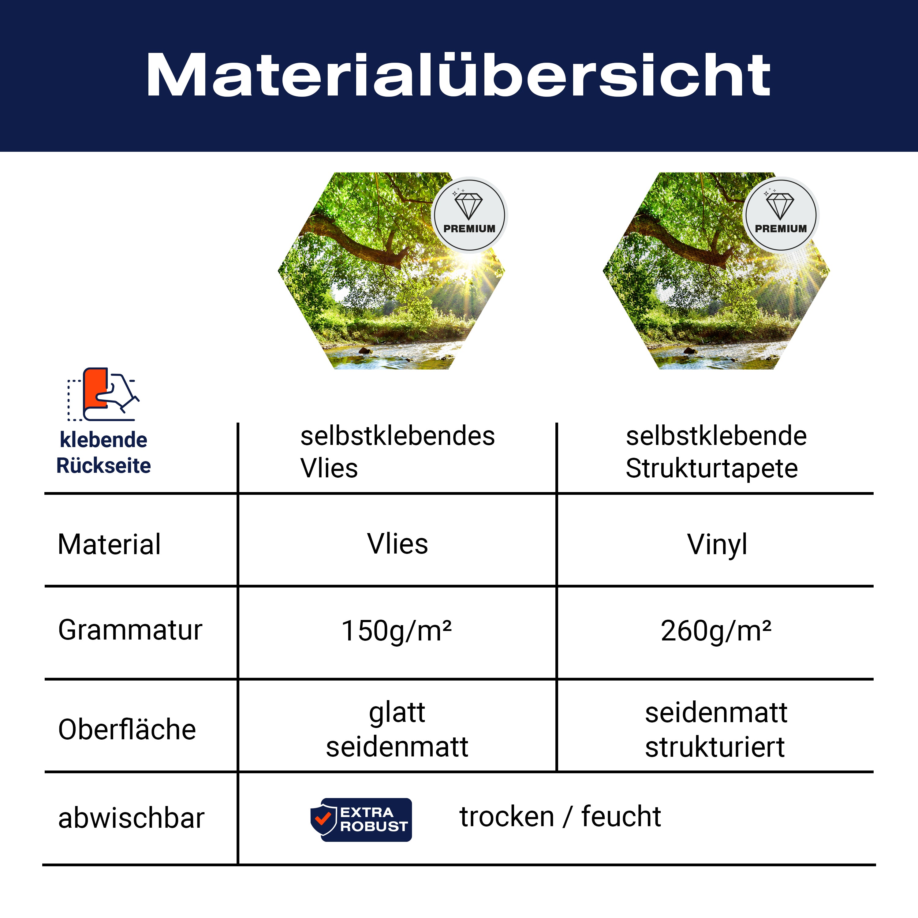 Setze auf die UV-Guard-Technologie, um deine selbstklebenden Panorama-Fototapeten nicht nur atemberaubend, sondern auch dauerhaft strahlend zu gestalten. Dieser fortschrittliche UV-Schutz sorgt dafür, dass die lebhaften Farben und scharfen Details deiner Wandgestaltung gegen die bleichende Wirkung der Sonnenstrahlen geschützt sind. Egal, wie intensiv das Sonnenlicht ist, die UV-Guard-Technologie bewahrt die Brillanz und Tiefe deiner Bilder, sodass sie jahrelang wie neu aussehen. Mach dir keine Sorgen mehr über verblassende Farben oder den Verlust von Detailreichtum. Mit dieser Technologie investierst du in die Langlebigkeit und Schönheit deiner Räume. Steige jetzt um auf UV-Guard und genieße ungetrübte Farbenpracht bei jedem Licht.