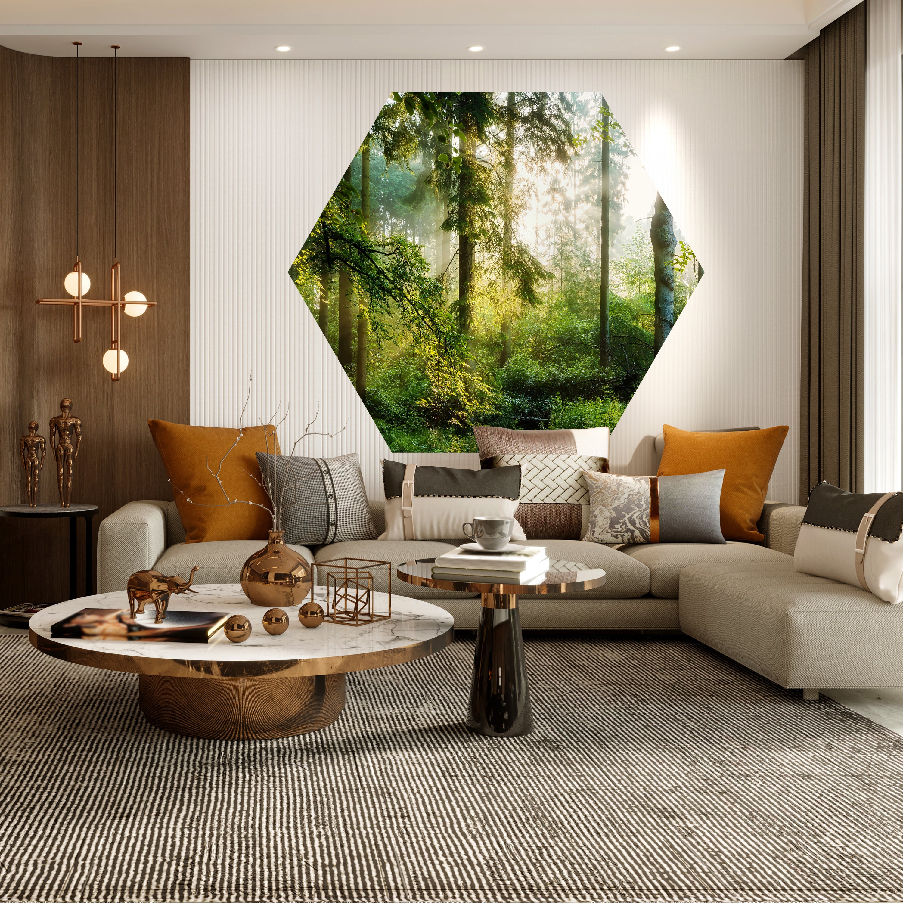 HEXAGON-FOTOTAPETE Wald Wiese Bäume