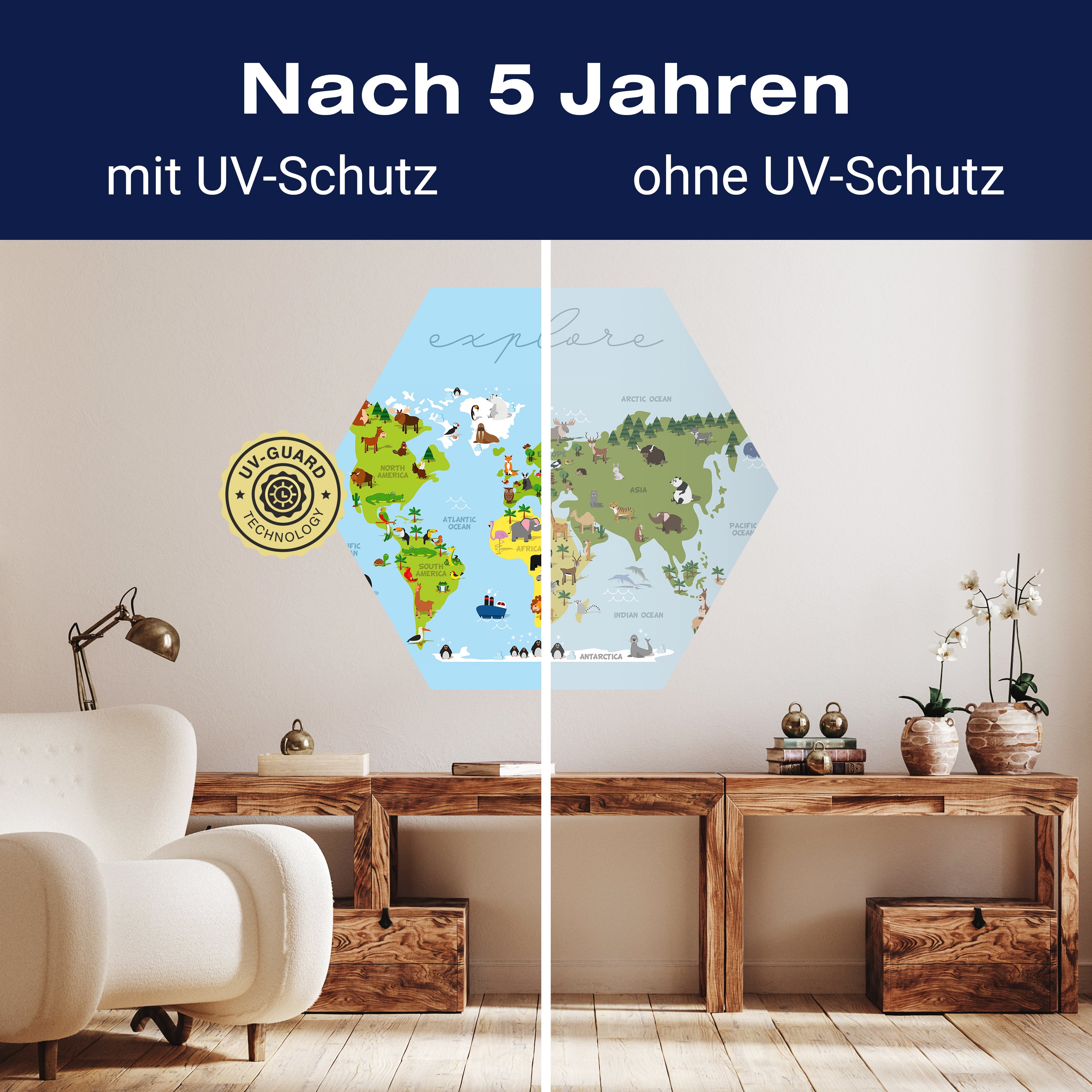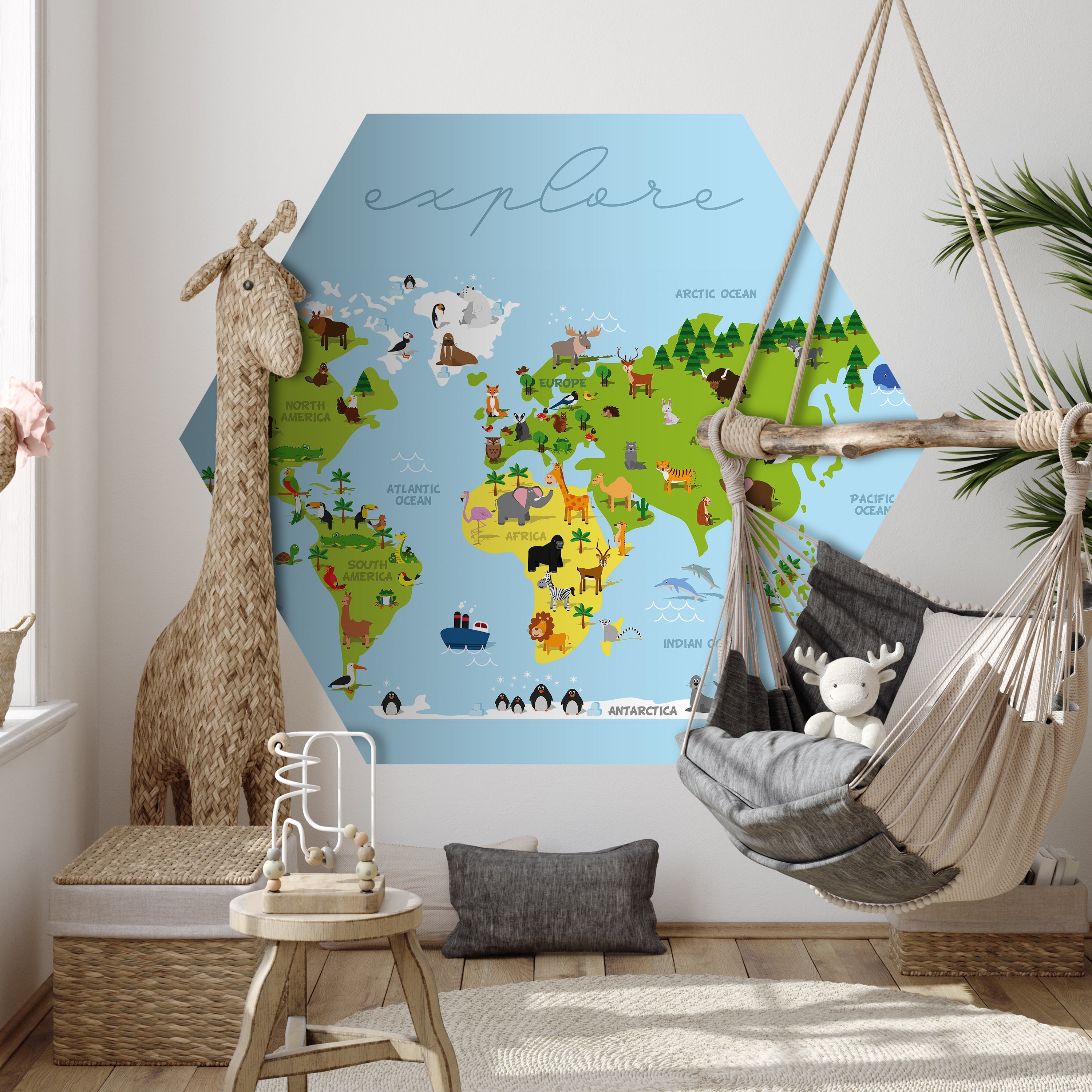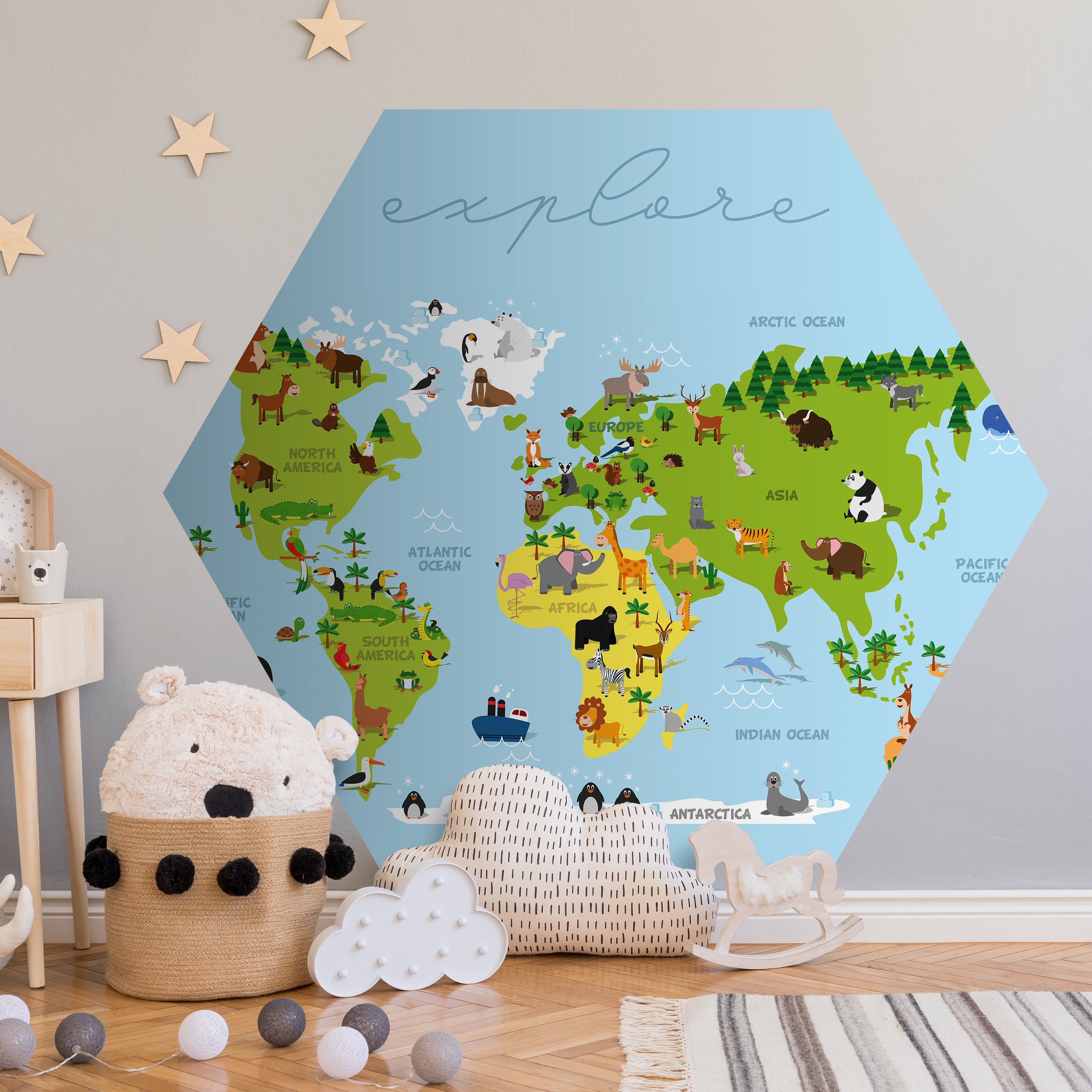 HEXAGON-FOTOTAPETE Weltkarte mit Tieren