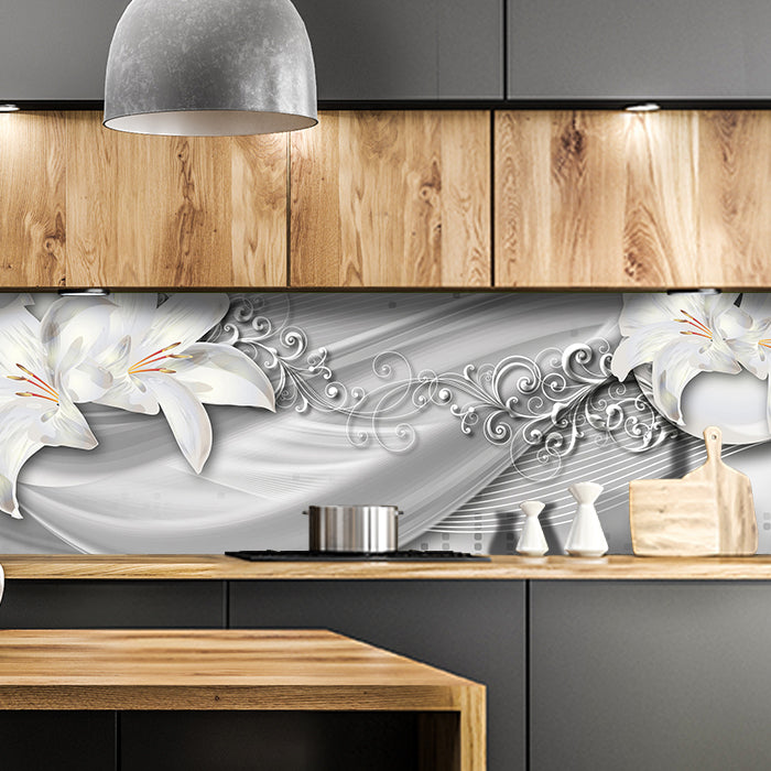 Küchenrückwand abstrakte Lilien grau silber M0524