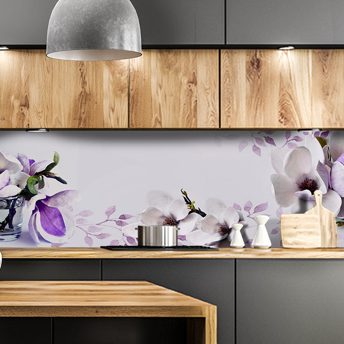Bist Du es leid, auf die langweiligen, schwer zu reinigende Fliesen in Deiner Küche zu schauen? Stell Dir vor, wie Deine Küche mit einer stilvollen, modernen Rückwand zum Leben erwacht! Unsere Küchenrückwand 'Blumen Violett Glas' ist nicht nur ein optisches Highlight, sondern auch praktisch und pflegeleicht.