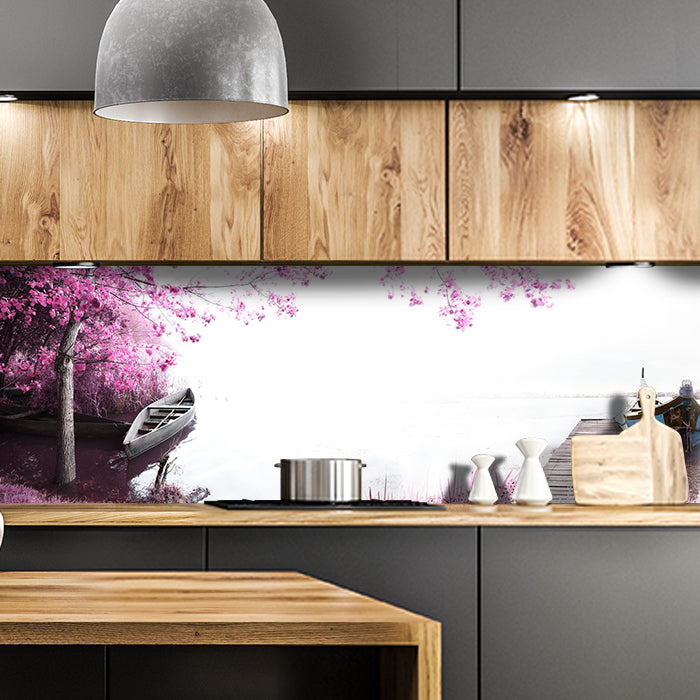 Küchenrückwand Boote Steg See Pink Blüten M1133