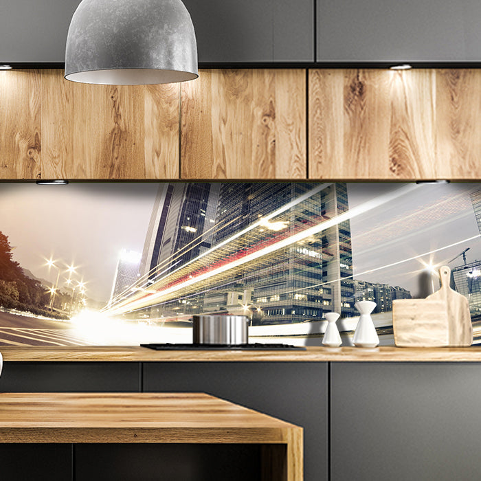Bist Du es leid, auf die langweiligen, schwer zu reinigende Fliesen in Deiner Küche zu schauen? Stell Dir vor, wie Deine Küche mit einer stilvollen, modernen Rückwand zum Leben erwacht! Unsere Küchenrückwand 'City lights' ist nicht nur ein optisches Highlight, sondern auch praktisch und pflegeleicht.
