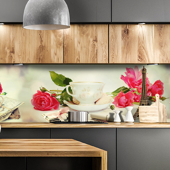 Küchenrückwand Eifelturm Rosen Briefe Schlüssel Tasse M1178