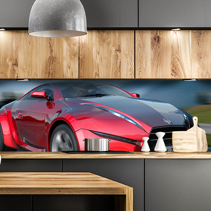Bist Du es leid, auf die langweiligen, schwer zu reinigende Fliesen in Deiner Küche zu schauen? Stell Dir vor, wie Deine Küche mit einer stilvollen, modernen Rückwand zum Leben erwacht! Unsere Küchenrückwand 'Fahrender Sportwagen' ist nicht nur ein optisches Highlight, sondern auch praktisch und pflegeleicht.