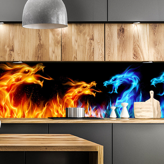 Bist Du es leid, auf die langweiligen, schwer zu reinigende Fliesen in Deiner Küche zu schauen? Stell Dir vor, wie Deine Küche mit einer stilvollen, modernen Rückwand zum Leben erwacht! Unsere Küchenrückwand 'Feuerdrachen' ist nicht nur ein optisches Highlight, sondern auch praktisch und pflegeleicht.