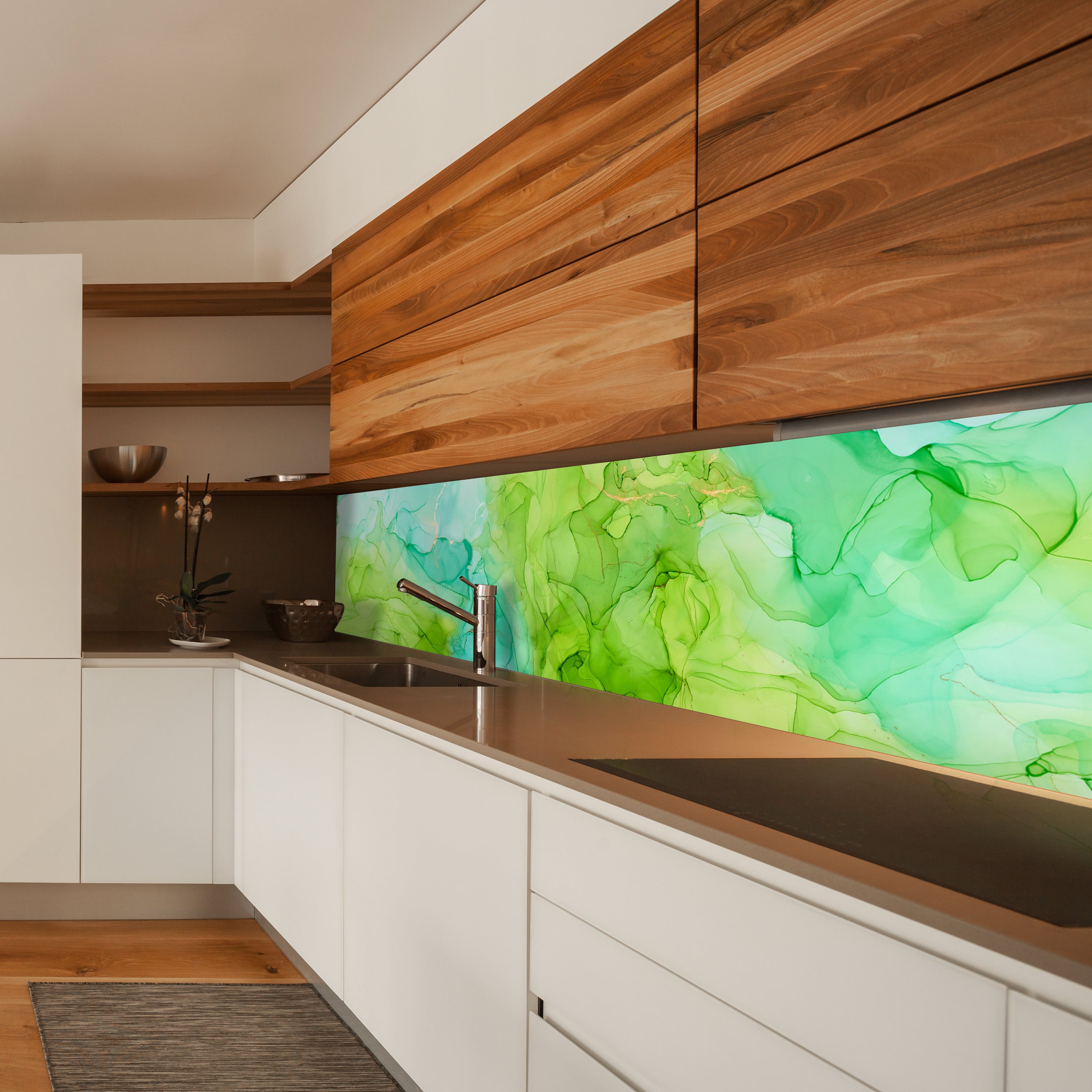 Bist Du es leid, auf die langweiligen, schwer zu reinigende Fliesen in Deiner Küche zu schauen? Stell Dir vor, wie Deine Küche mit einer stilvollen, modernen Rückwand zum Leben erwacht! Unsere Küchenrückwand 'grüner Marmor, Stein' ist nicht nur ein optisches Highlight, sondern auch praktisch und pflegeleicht.