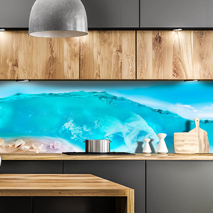 Bist Du es leid, auf die langweiligen, schwer zu reinigende Fliesen in Deiner Küche zu schauen? Stell Dir vor, wie Deine Küche mit einer stilvollen, modernen Rückwand zum Leben erwacht! Unsere Küchenrückwand 'Hellblau See Wasser Flaschenpost Muschel' ist nicht nur ein optisches Highlight, sondern auch praktisch und pflegeleicht.