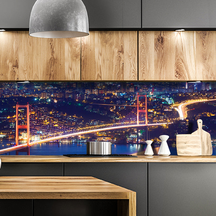 Bist Du es leid, auf die langweiligen, schwer zu reinigende Fliesen in Deiner Küche zu schauen? Stell Dir vor, wie Deine Küche mit einer stilvollen, modernen Rückwand zum Leben erwacht! Unsere Küchenrückwand 'Istanbul bei Nacht' ist nicht nur ein optisches Highlight, sondern auch praktisch und pflegeleicht.