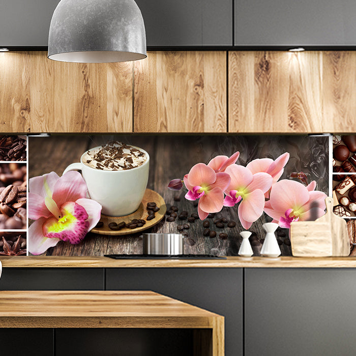 Küchenrückwand Kaffee Orchidee Schokolade Braun M1085