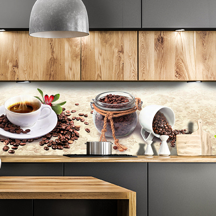 Bist Du es leid, auf die langweiligen, schwer zu reinigende Fliesen in Deiner Küche zu schauen? Stell Dir vor, wie Deine Küche mit einer stilvollen, modernen Rückwand zum Leben erwacht! Unsere Küchenrückwand 'Kaffee Tasse Glas Schokolade Haselnuss' ist nicht nur ein optisches Highlight, sondern auch praktisch und pflegeleicht.