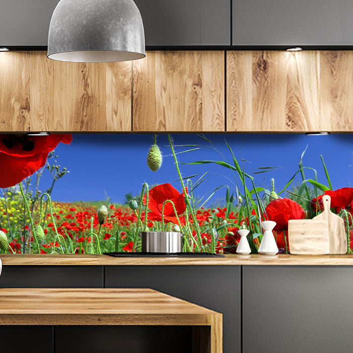Bist Du es leid, auf die langweiligen, schwer zu reinigende Fliesen in Deiner Küche zu schauen? Stell Dir vor, wie Deine Küche mit einer stilvollen, modernen Rückwand zum Leben erwacht! Unsere Küchenrückwand 'Mohnblumenfeld' ist nicht nur ein optisches Highlight, sondern auch praktisch und pflegeleicht.