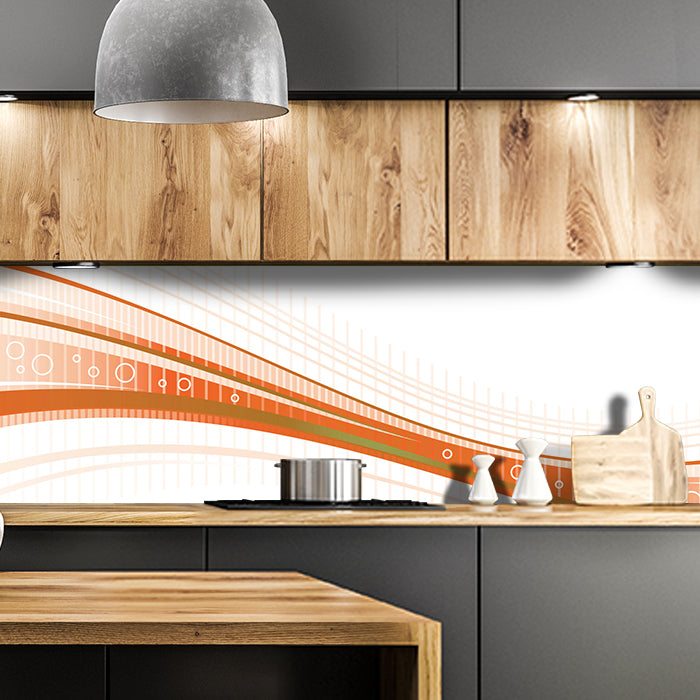 Bist Du es leid, auf die langweiligen, schwer zu reinigende Fliesen in Deiner Küche zu schauen? Stell Dir vor, wie Deine Küche mit einer stilvollen, modernen Rückwand zum Leben erwacht! Unsere Küchenrückwand 'Orangene Welle' ist nicht nur ein optisches Highlight, sondern auch praktisch und pflegeleicht.
