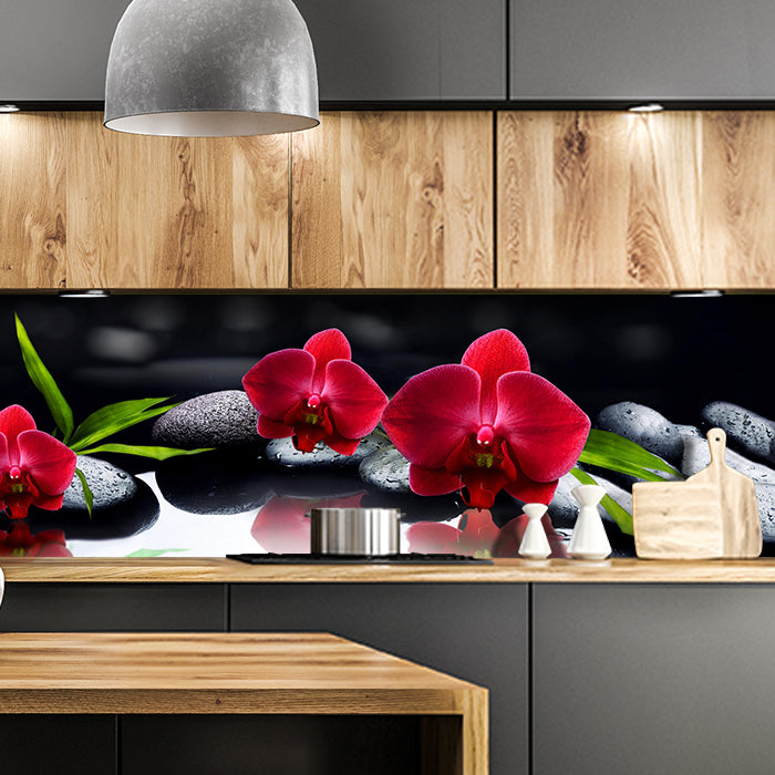 Küchenrückwand Orchidee rot Steine schwarz tropfen Spie M1125