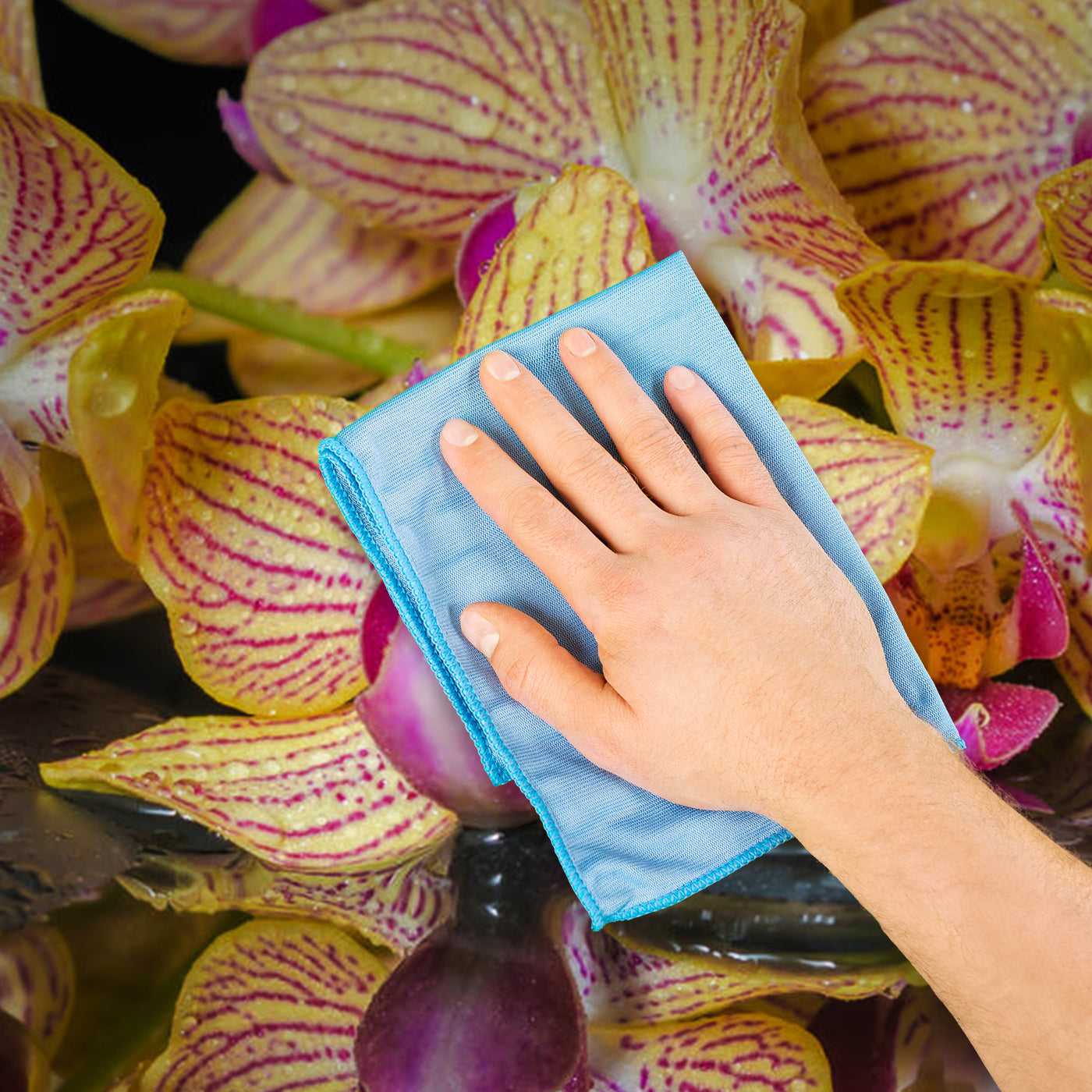 - Trockne die Oberfläche mit einem sauberen, fusselfreien Tuch ab, um Streifen oder Wasserflecken zu vermeiden.